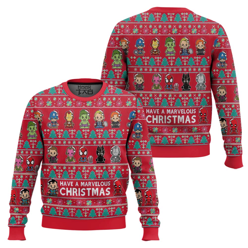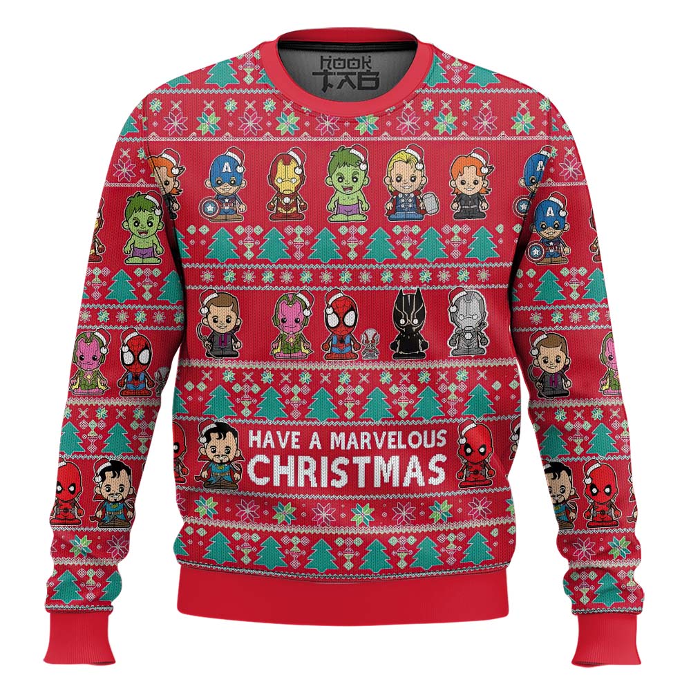 Hooktab Have A Marvelous Chritsmas Marvel Ugly Christmas Sweater