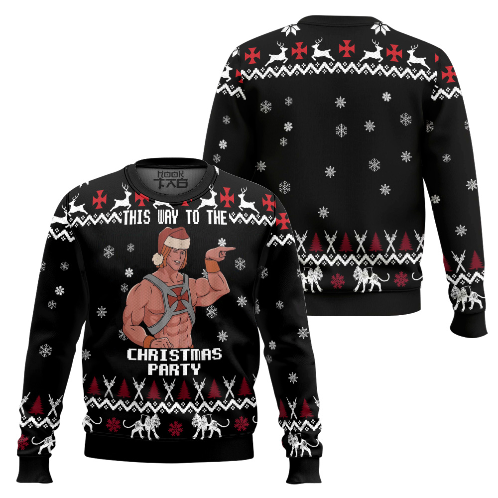 Hooktab He-man “This Way To The Christmas Party” Masters of the Universe Ugly Christmas Sweater