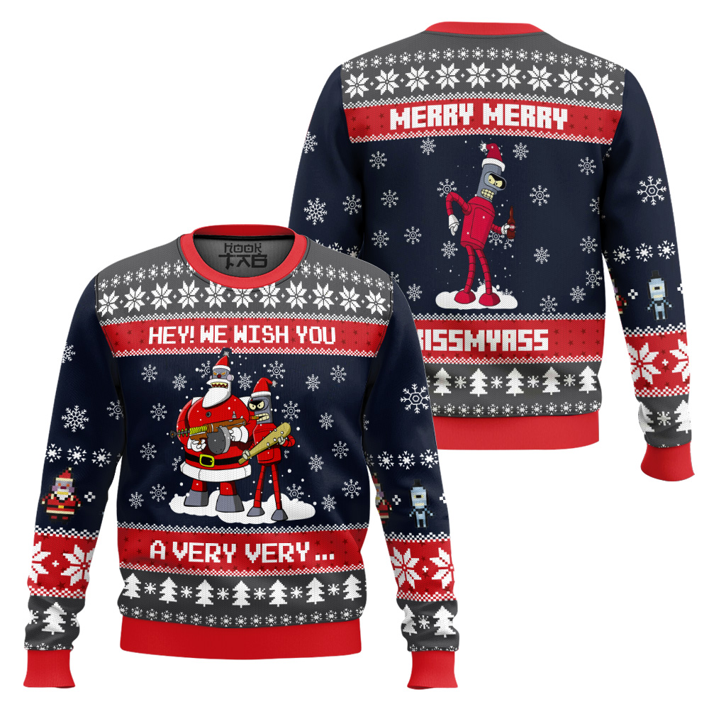 Hooktab Hey! We Wish You A Futurama Ugly Christmas Sweater