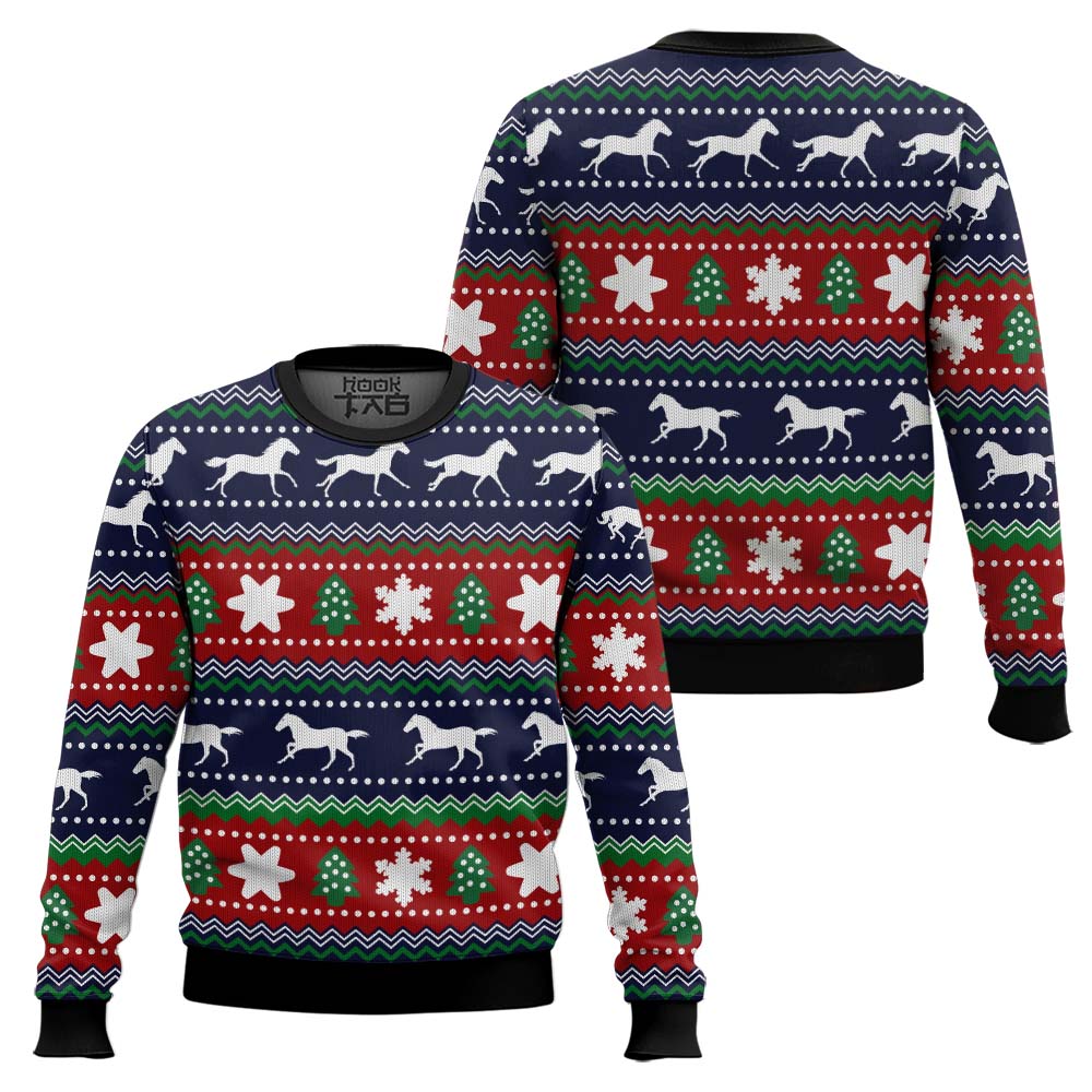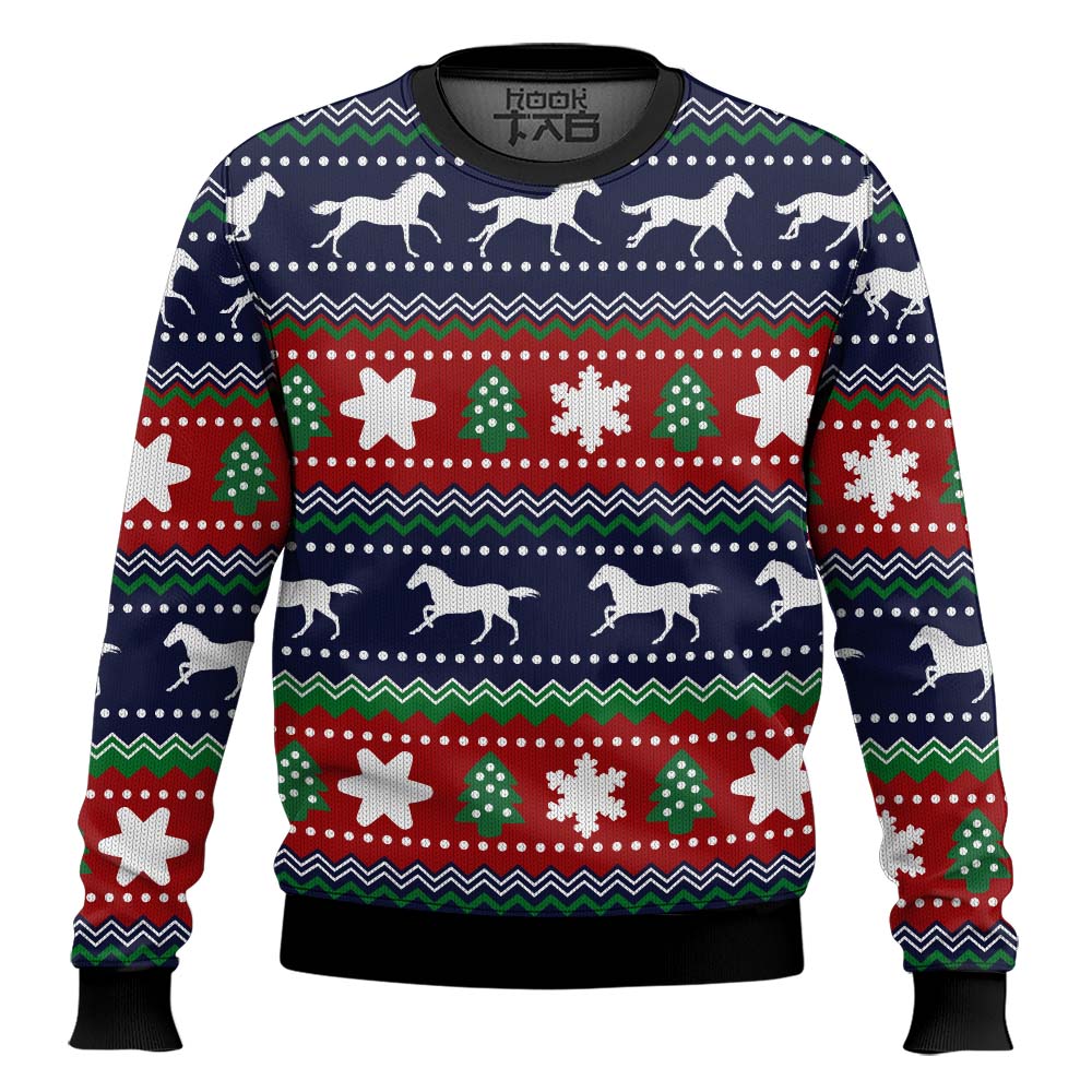 Hooktab Horses Pattern Ugly Christmas Sweater