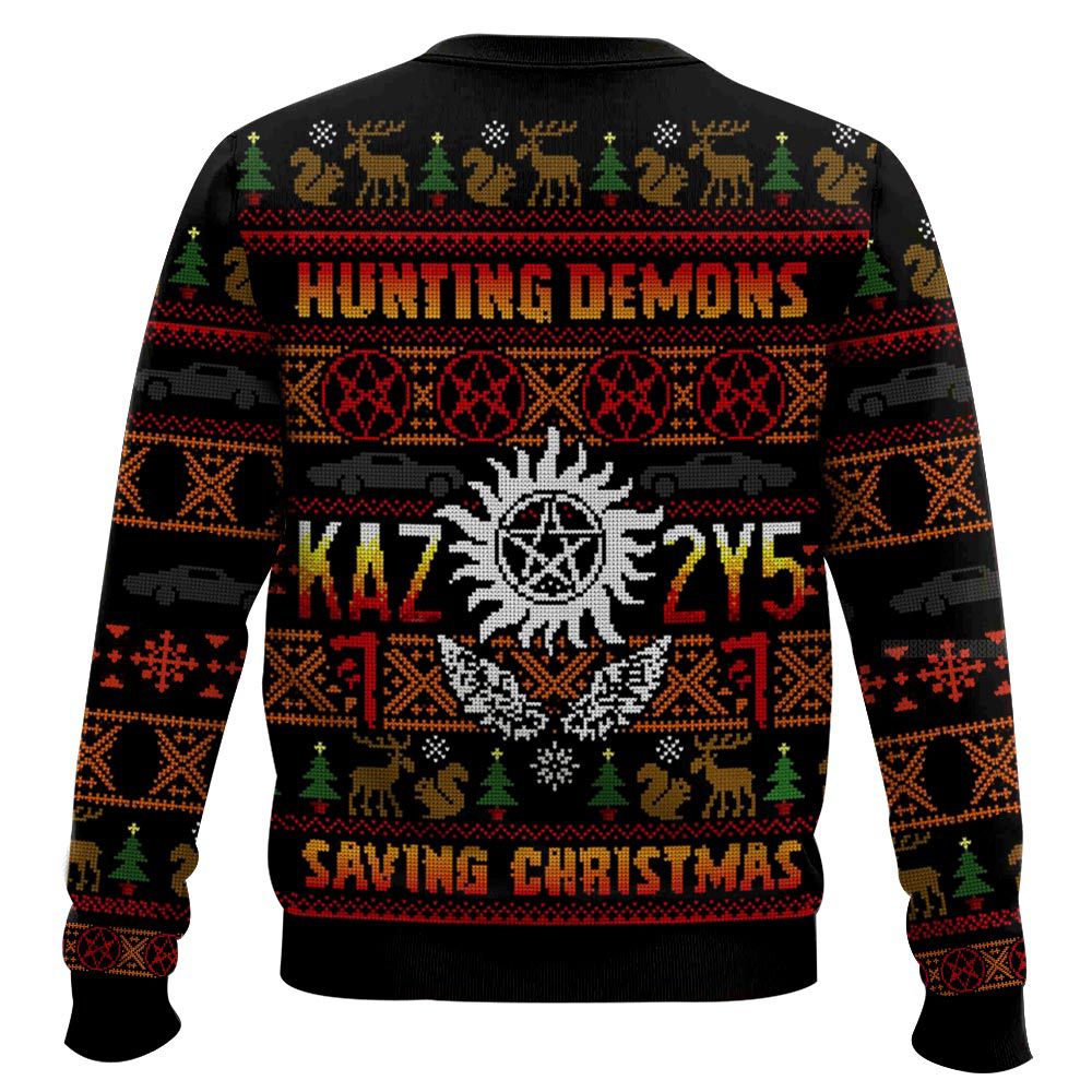 Hooktab Hunting Demons Saving Christmas Kaz 2y5 Supernatural Ugly Christmas Sweater