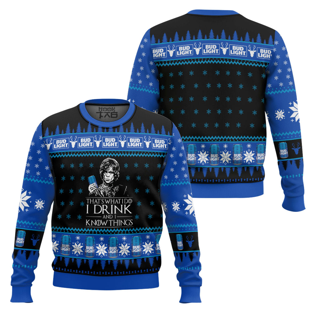 Hooktab I Drink Bud Light And I Know Things Ugly Christmas Sweater