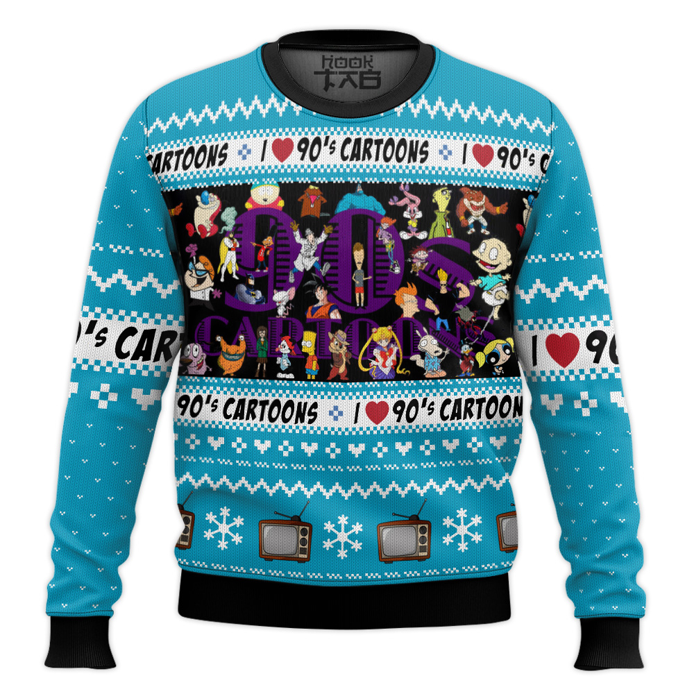 Hooktab I Love The 90s Cartoons Ugly Christmas Sweater