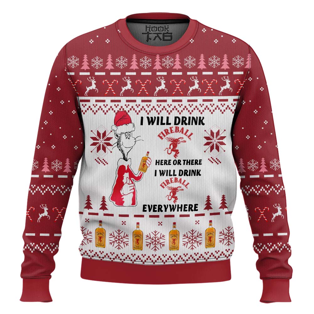 I Will Drink Fireball Whiskey Here Or There Christmas Ugly Sweater