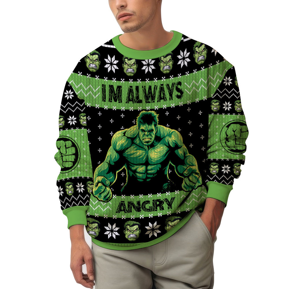 Hooktab I’m Always Angry Hulk Ugly Christmas Sweater
