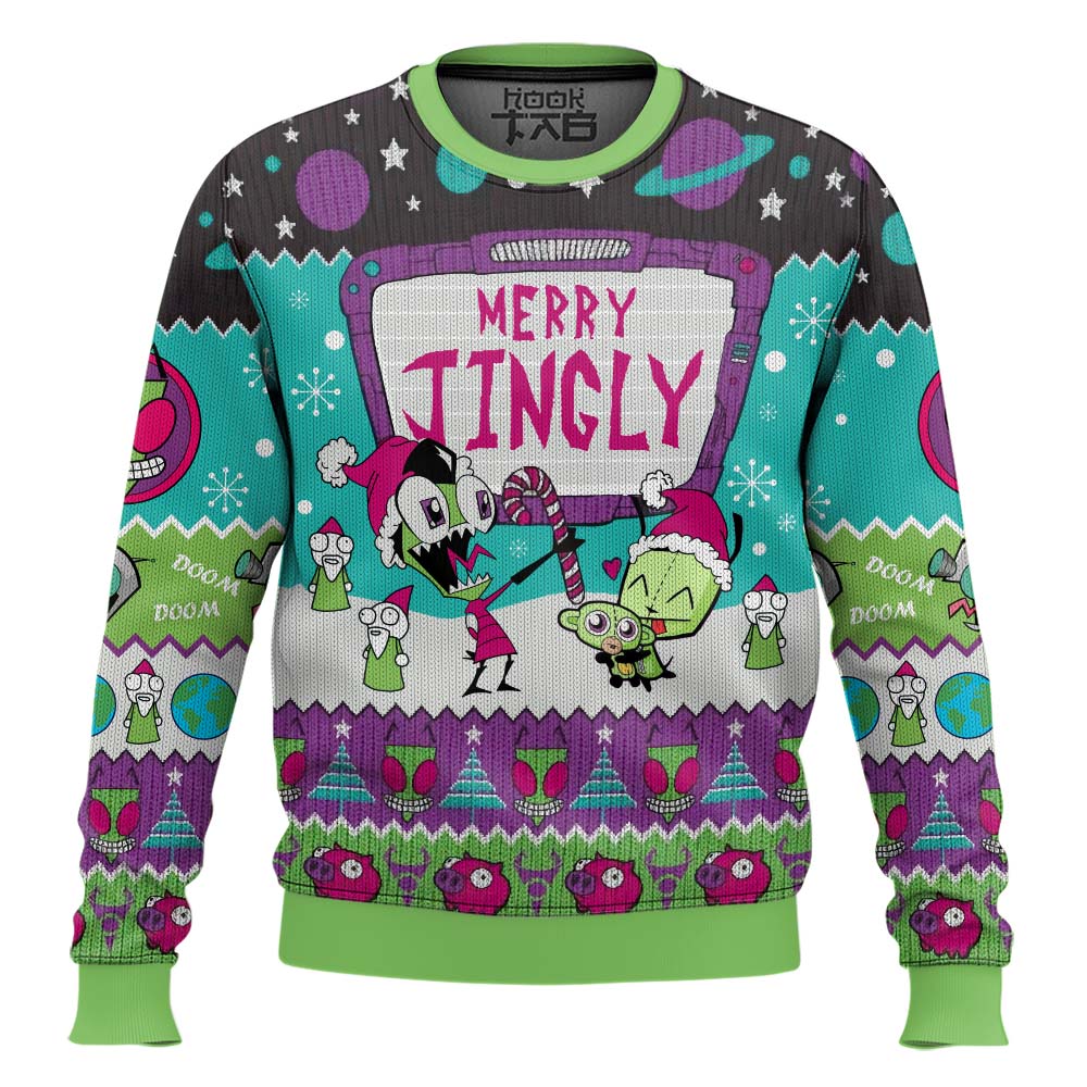 Hooktab Invader Zim Merry Jingly Ugly Christmas Sweater