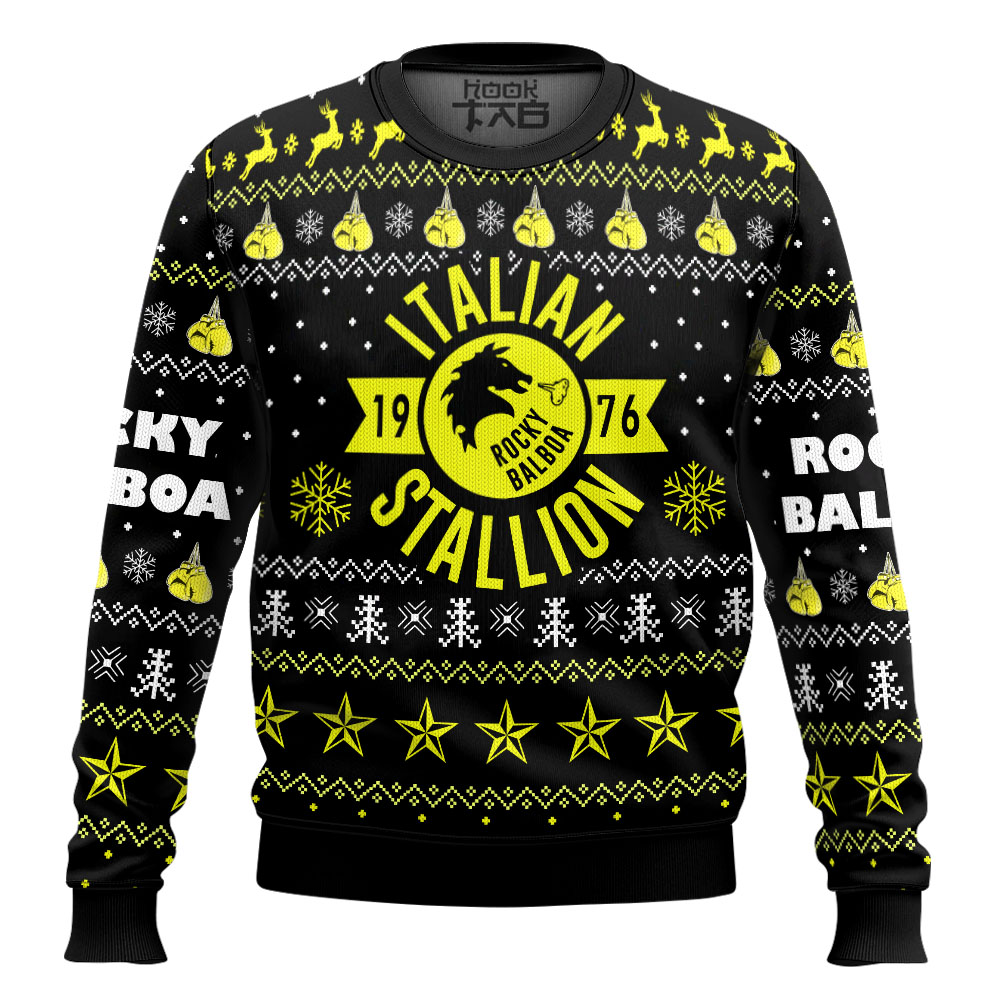 Hooktab Italian Stallion Balboa Rocky 1976 Ugly Christmas Sweater