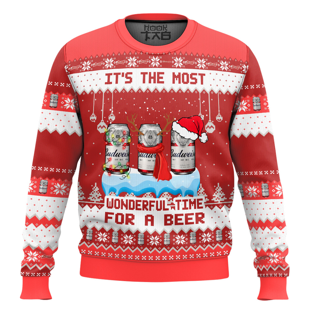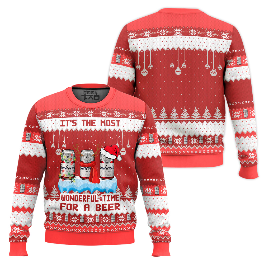 Hooktab It’s The Most Wonderful Time For A Budweiser Ugly Christmas Sweater