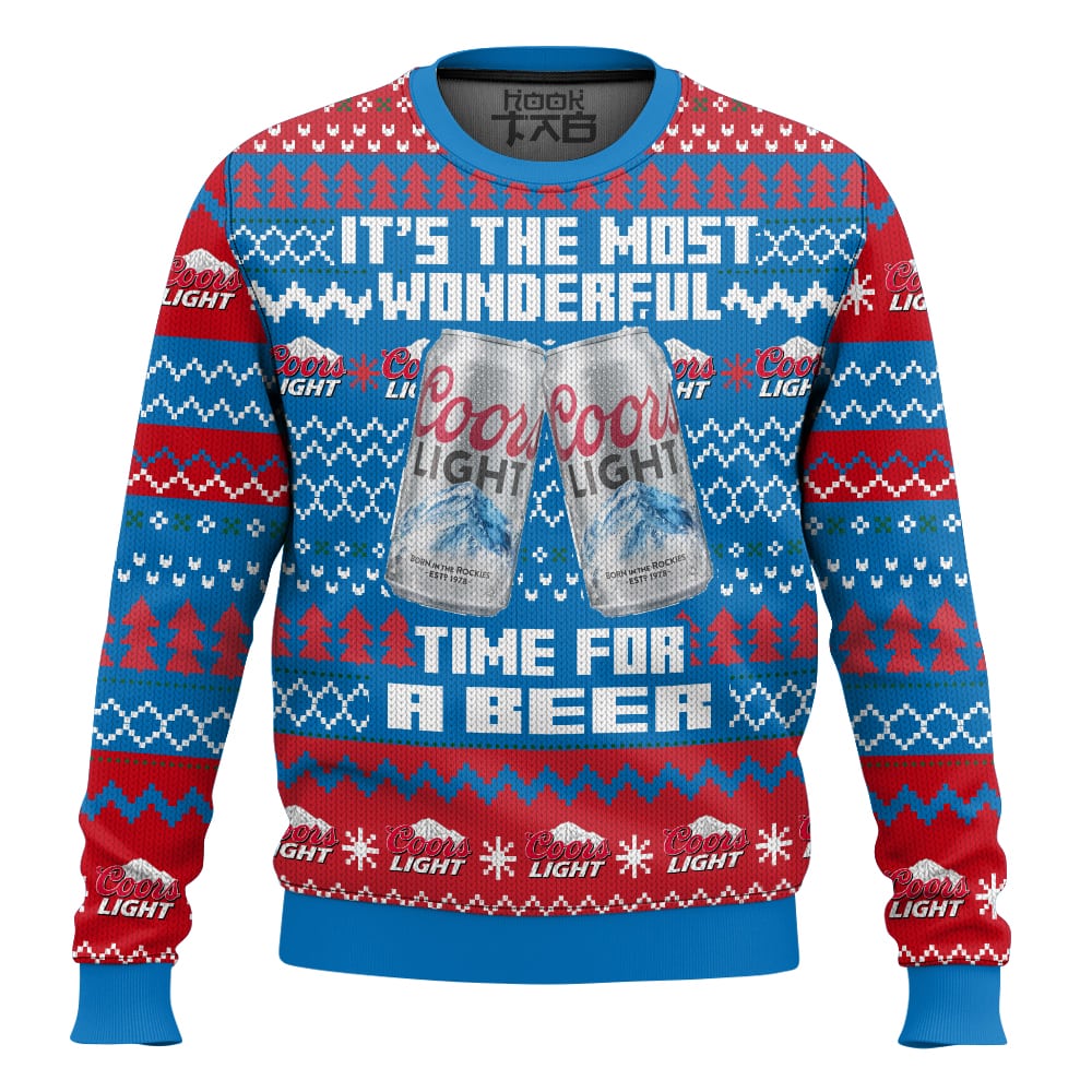 Hooktab It’s The Most Wonderful Time For A Coors Light Beer Ugly Christmas Sweater