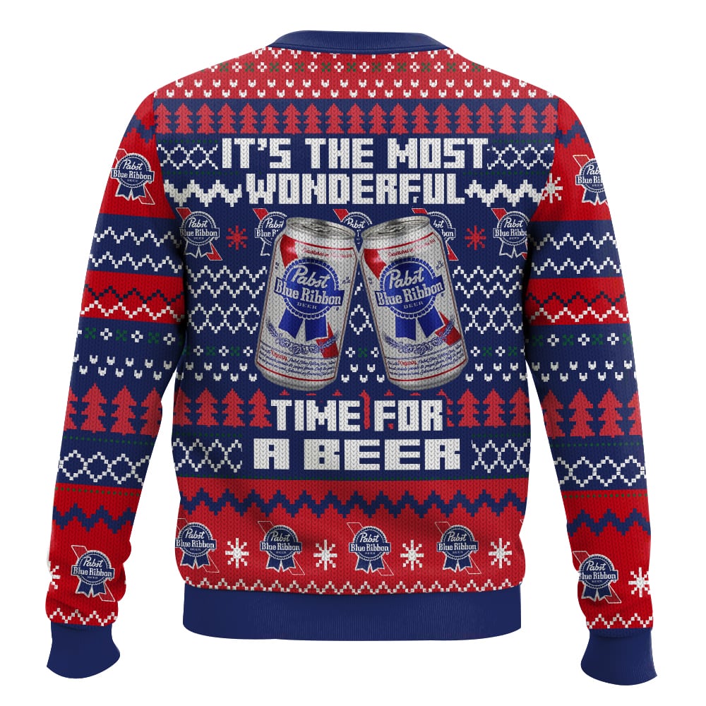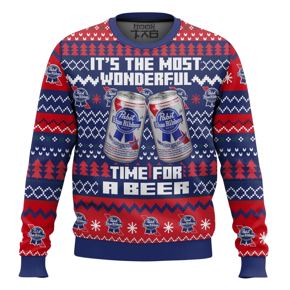 Hooktab It’s The Most Wonderful Time For A Pabst Blue Ribbon Ugly Christmas Sweater