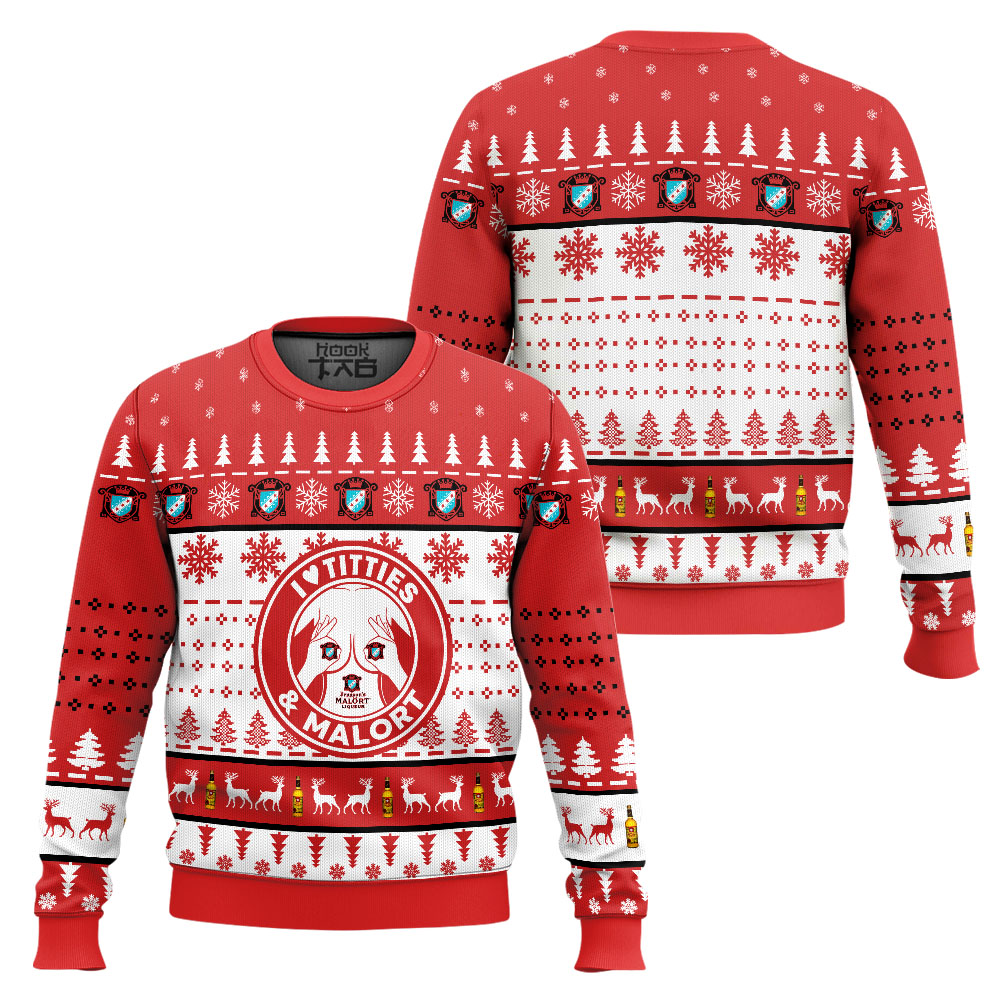 Hooktab Jeppson’s Malort Titties Funny Ugly Christmas Sweater