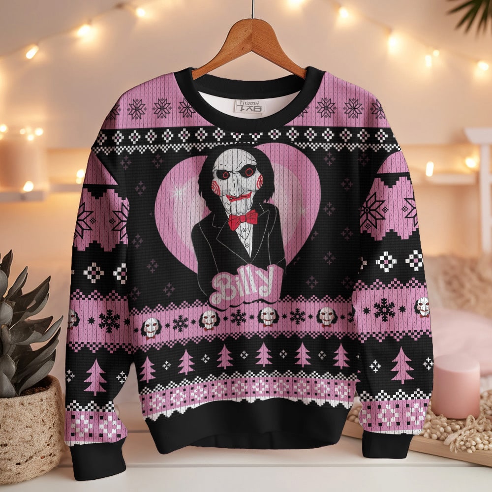 Hooktab Jigsaw Billy The Puppet Horror Ugly Christmas Sweater
