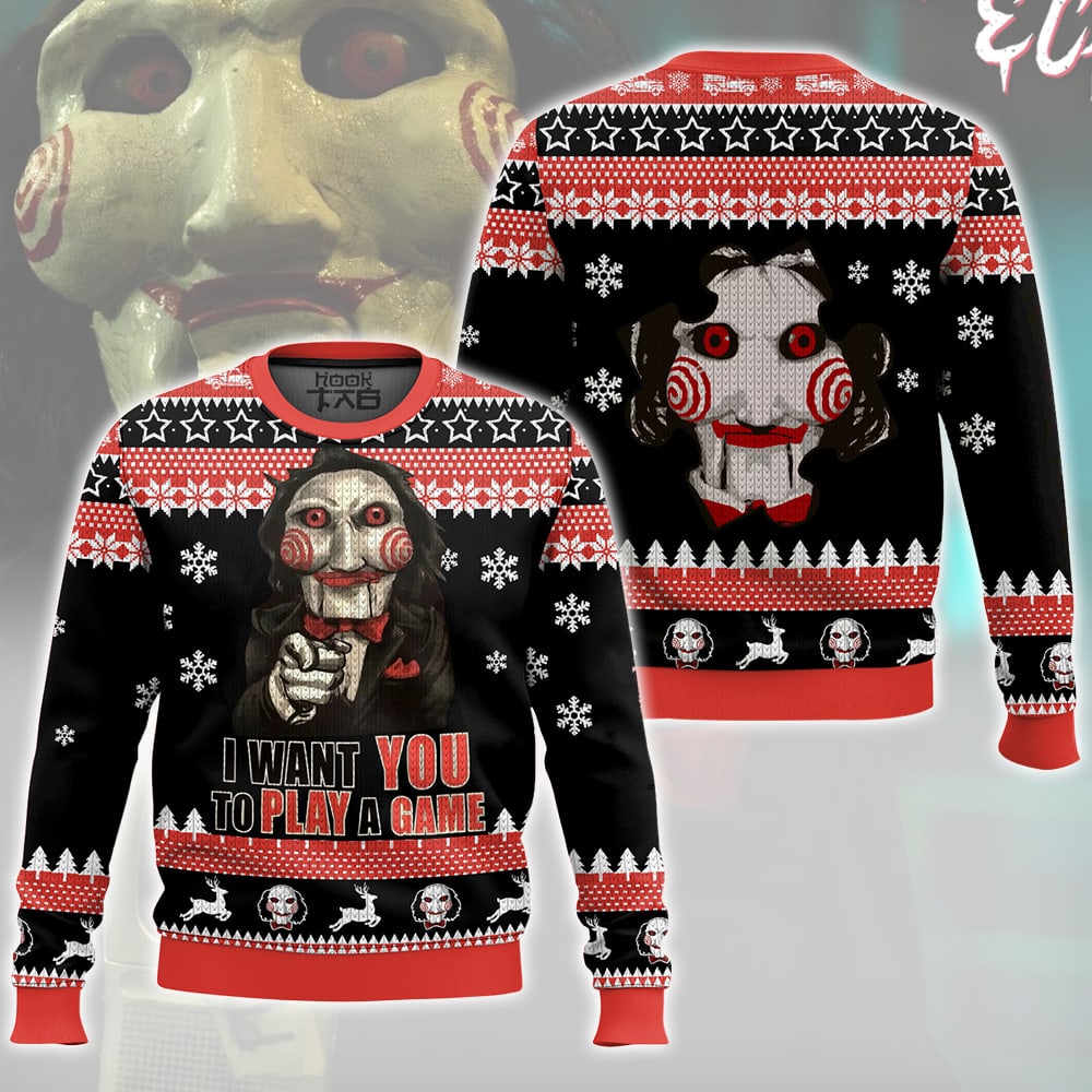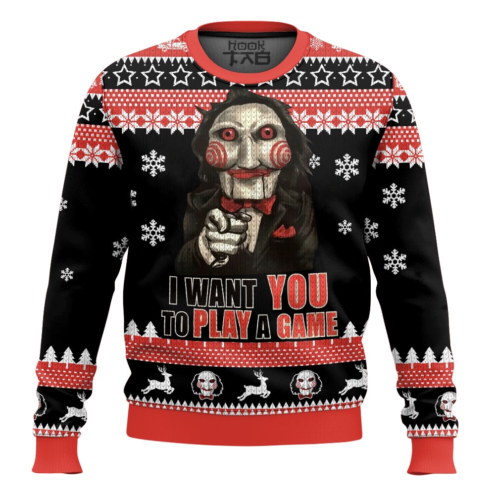 Hooktab Jigsaw I Want To Play A Game Saw Ugly Christmas Sweater