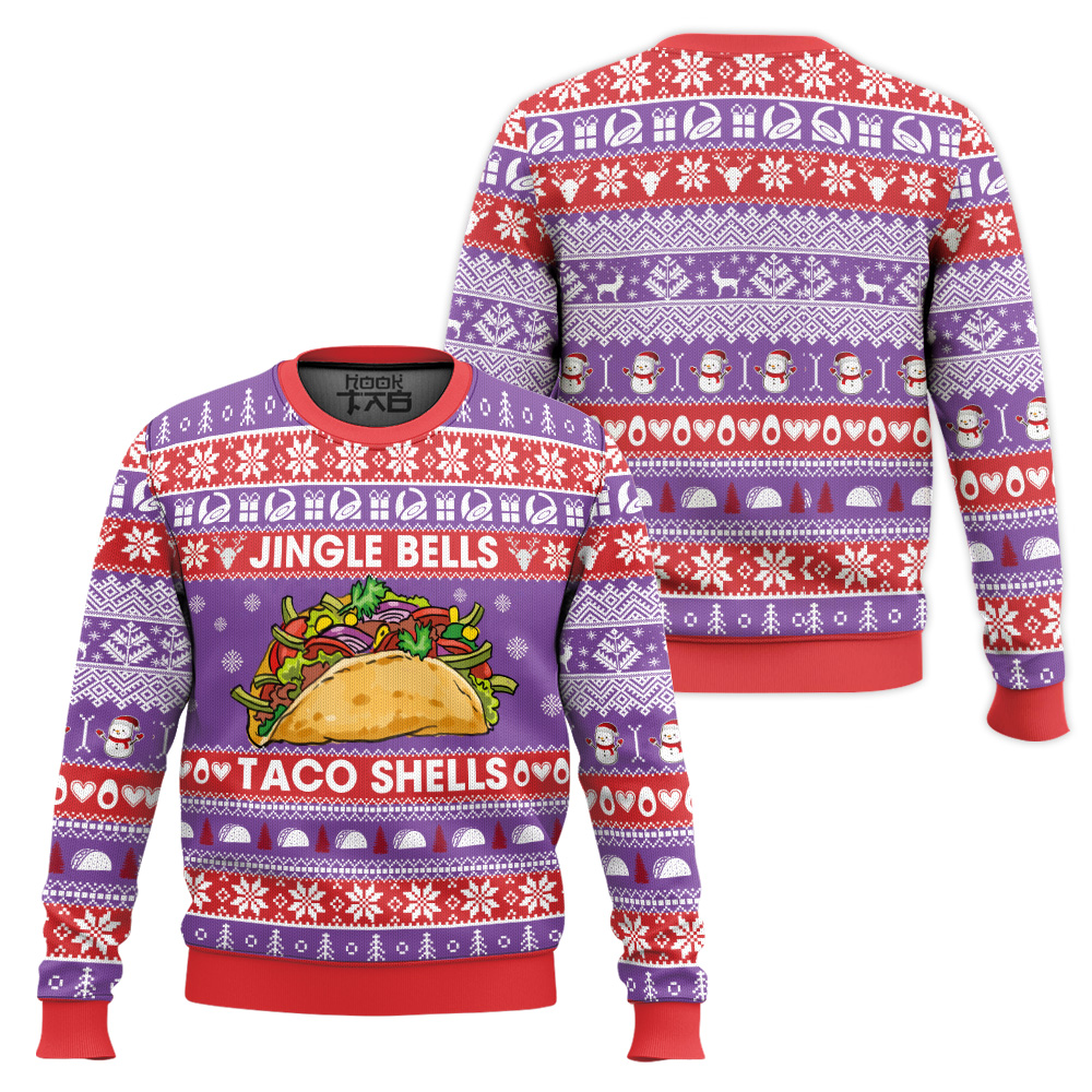 Hooktab Jingle Bells Taco Shells Ugly Christmas Sweater