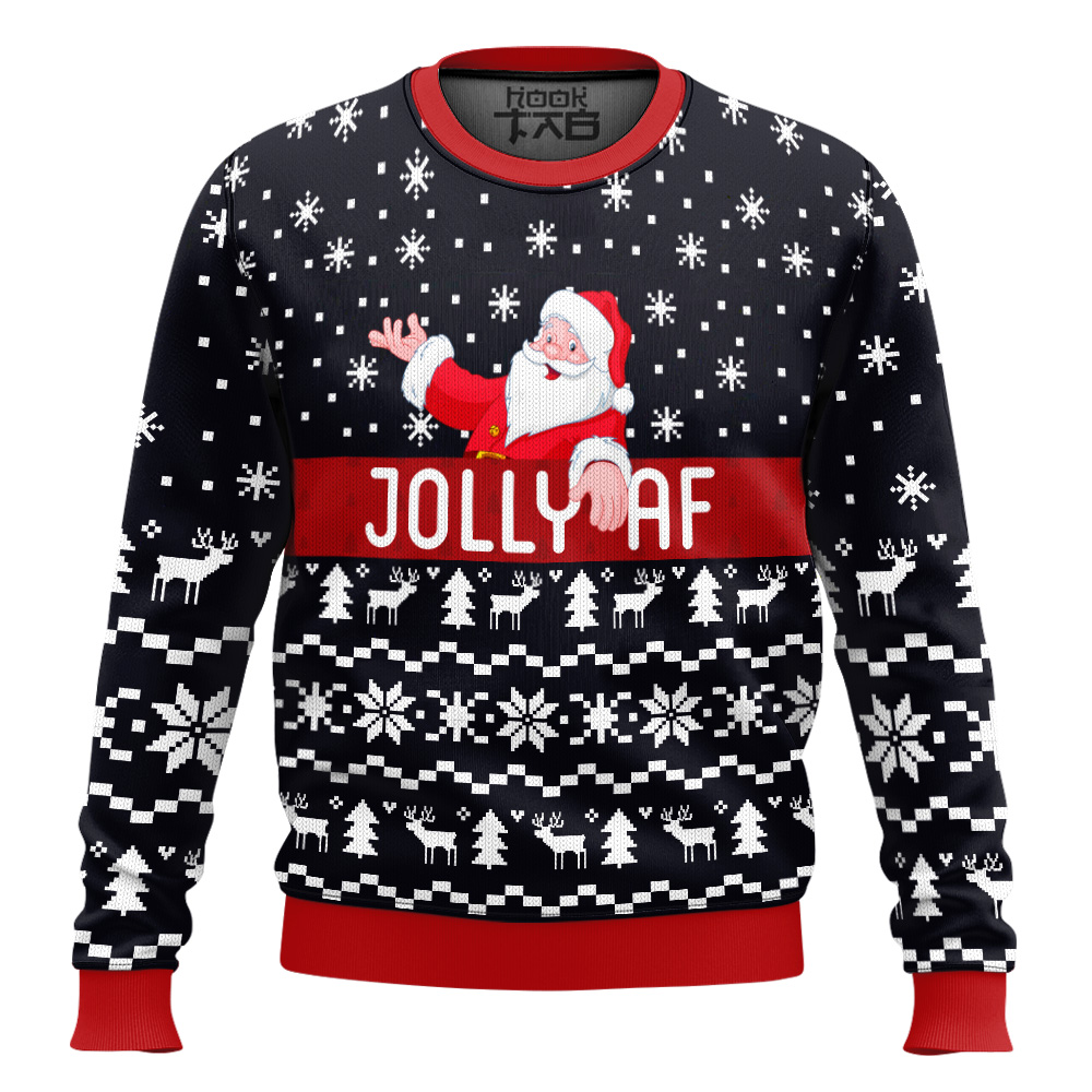 Hooktab Jolly AF Santa Claus Ugly Christmas Sweater