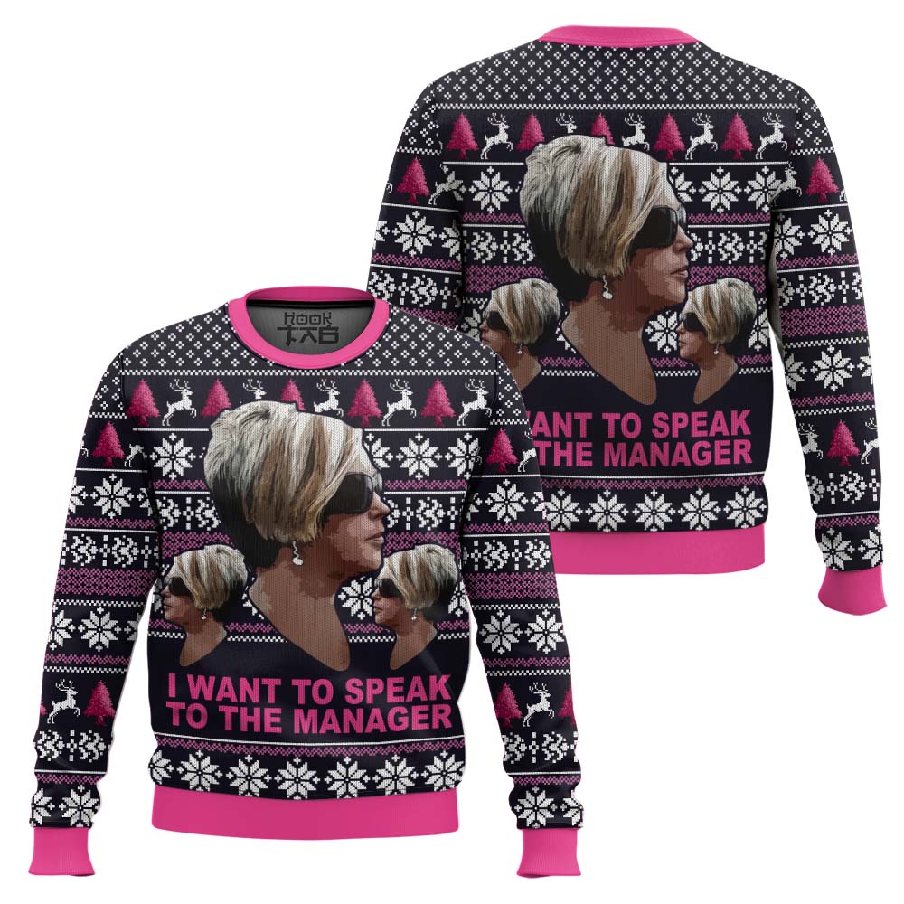 Hooktab Karen Want To Speak To Manager Meme Ugly Christmas Sweater