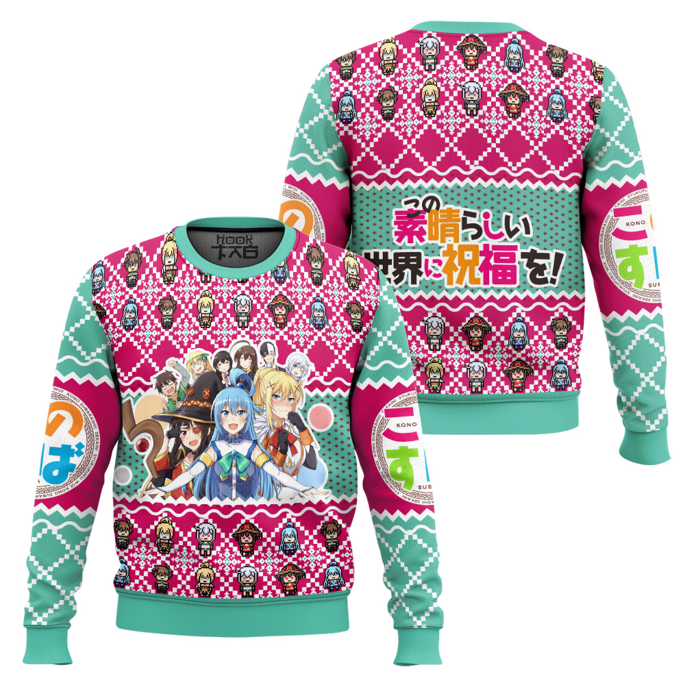 Hooktab Konosuba Characters Ugly Christmas Sweater