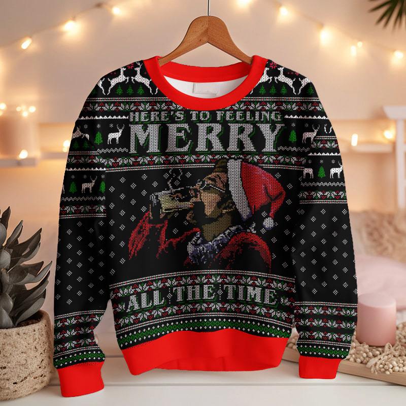 Hooktab Kramer Here’s To Feeling Merry All The Time Seinfeld Ugly Christmas Sweater