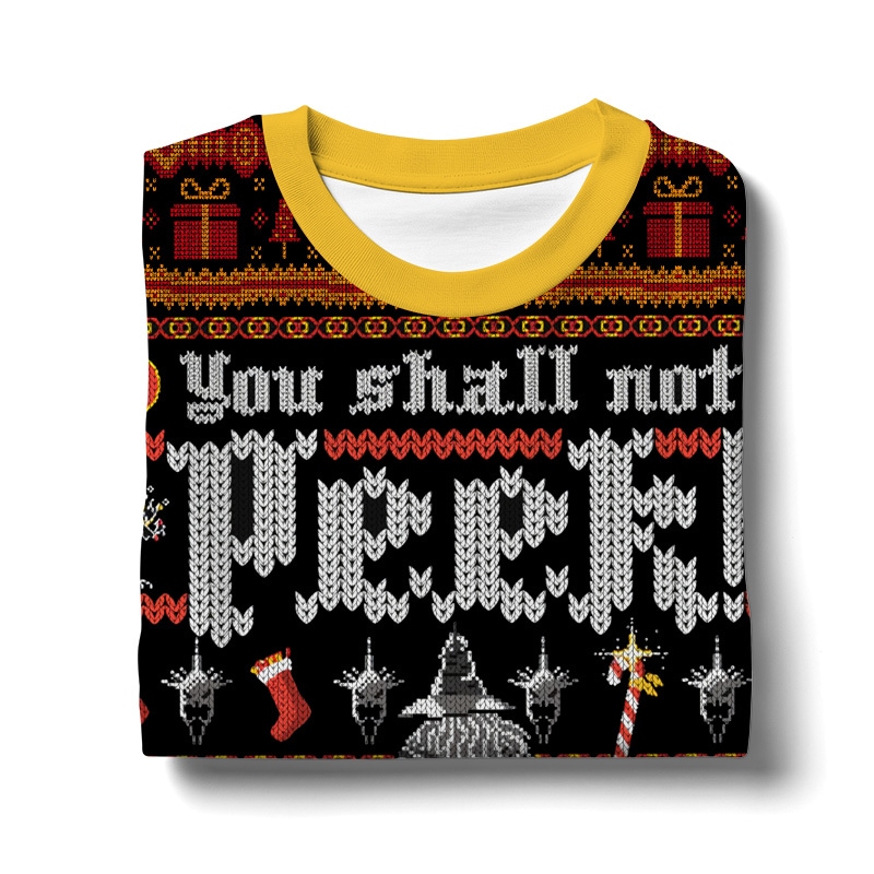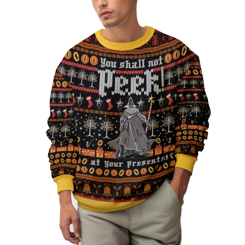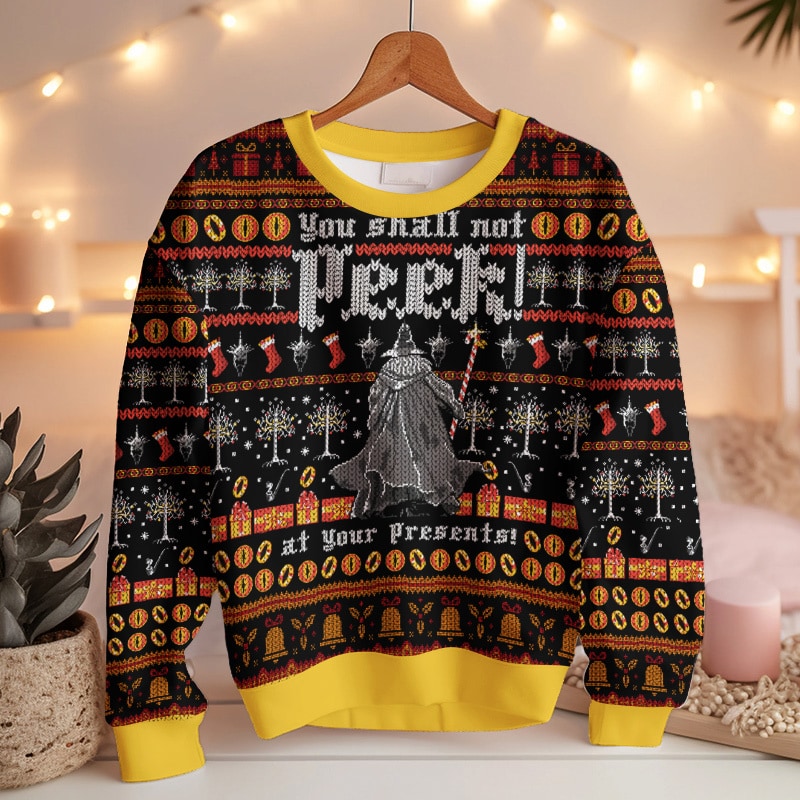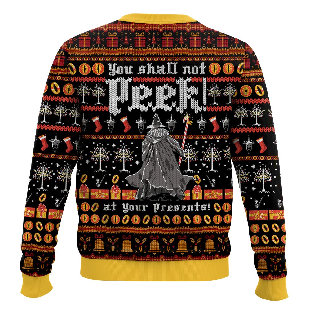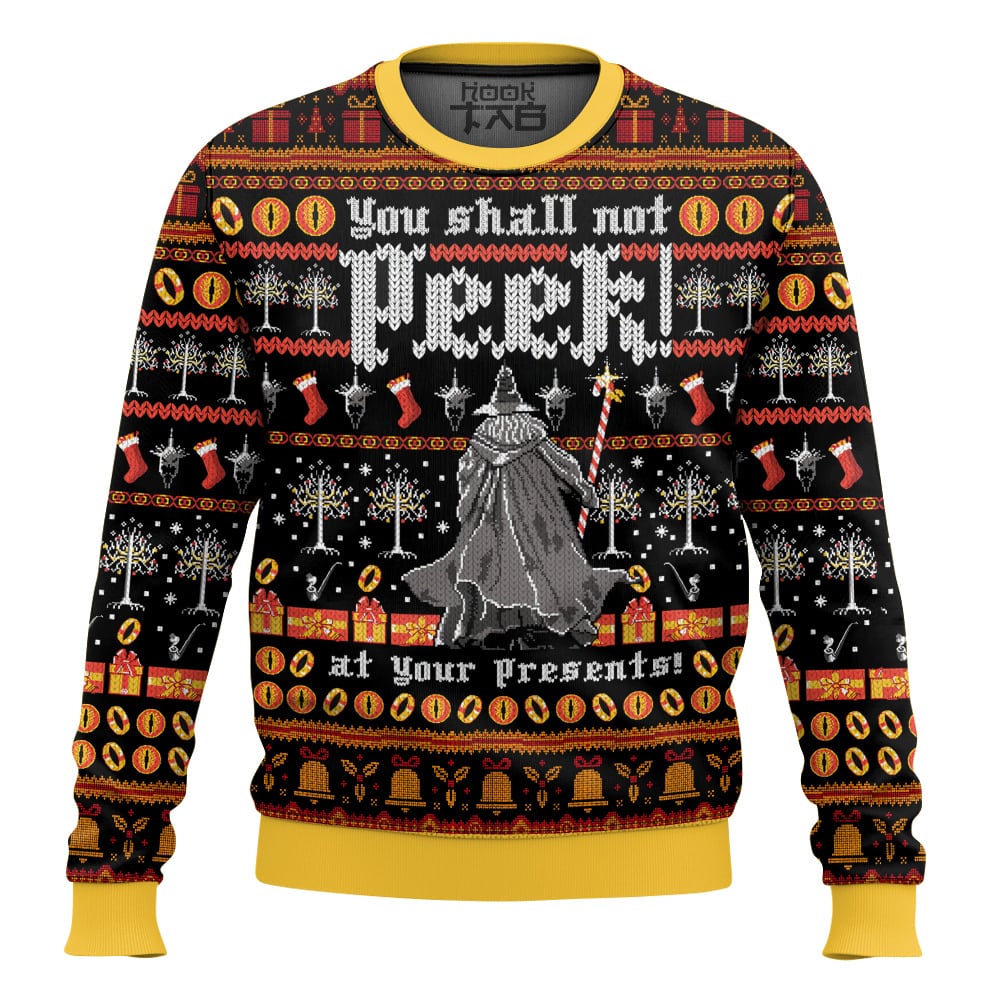 Hooktab Lord Of The Ring, You Shall Not Peek At Your Presents Ugly Christmas Sweater