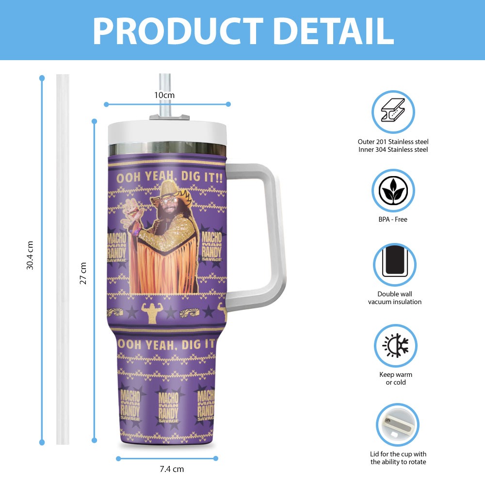 Hooktab Macho Man Oh Yeah Dig It WWE 40oz Stanley Shape Tumbler