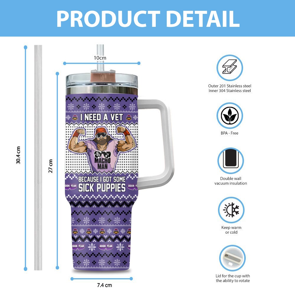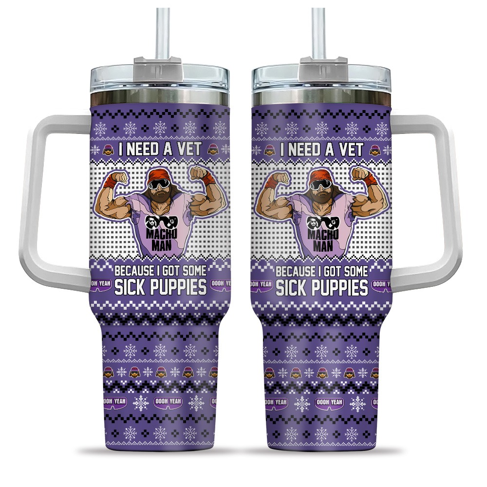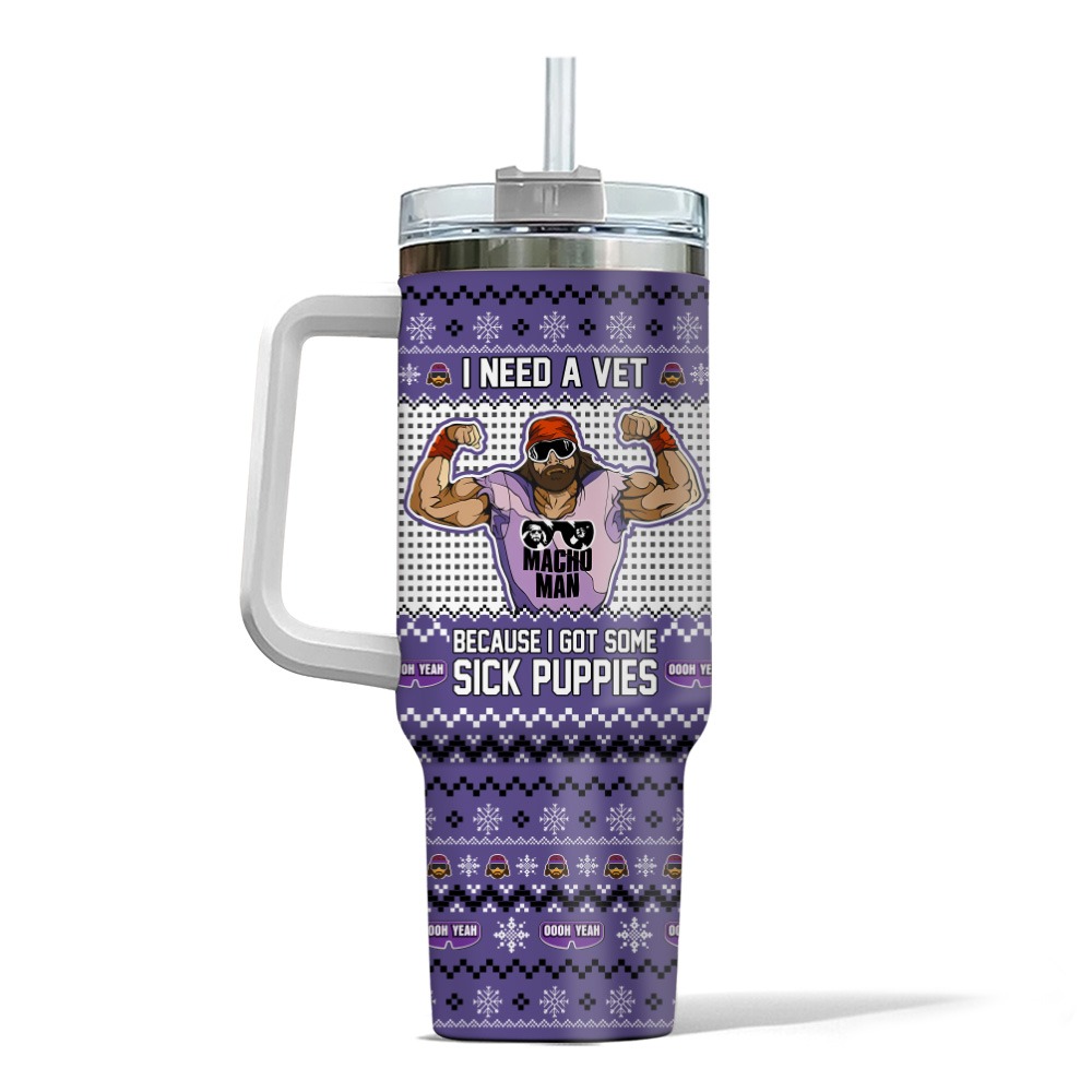 Hooktab Macho Man Sick Puppies WWE 40oz Stanley Shape Tumbler