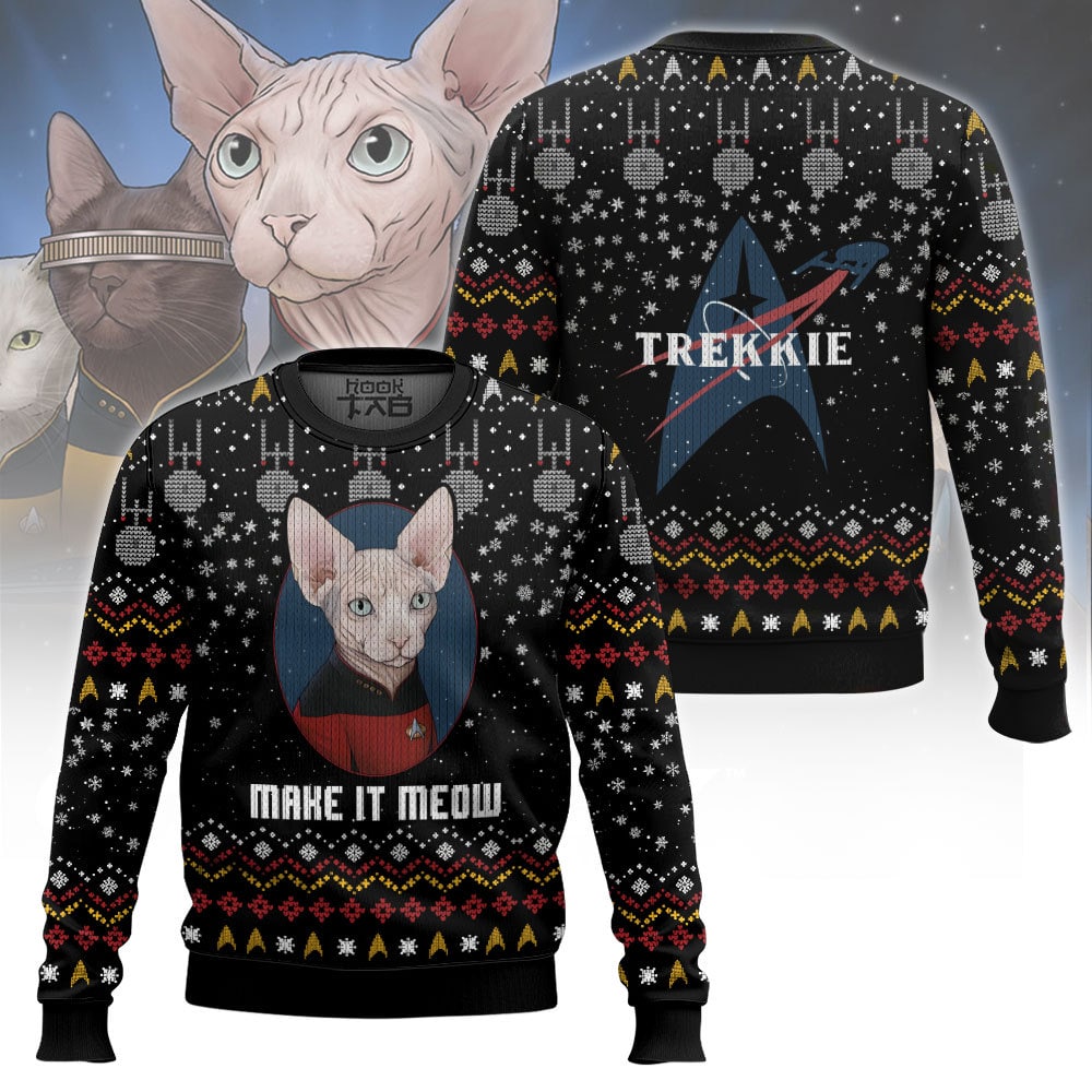 Star Strek the Cat “Make it Meow” Christmas Ugly Sweater
