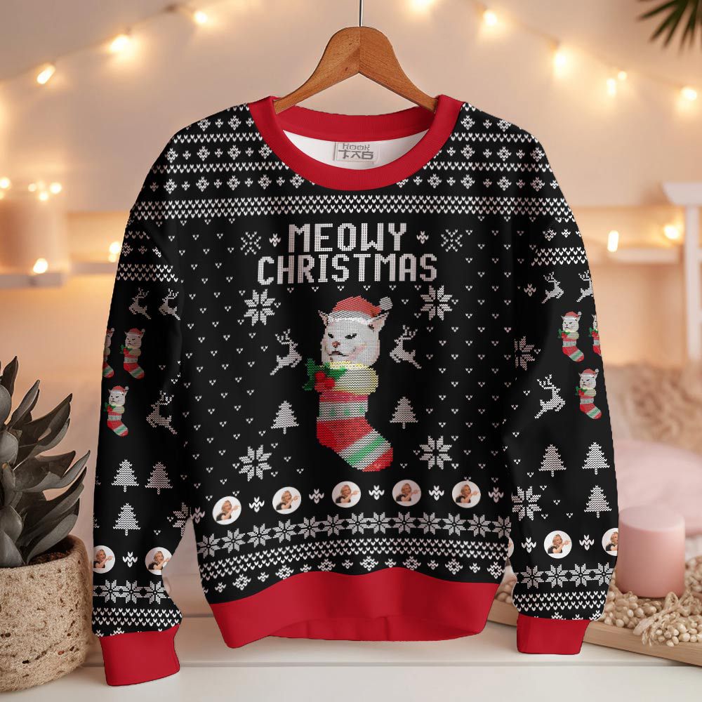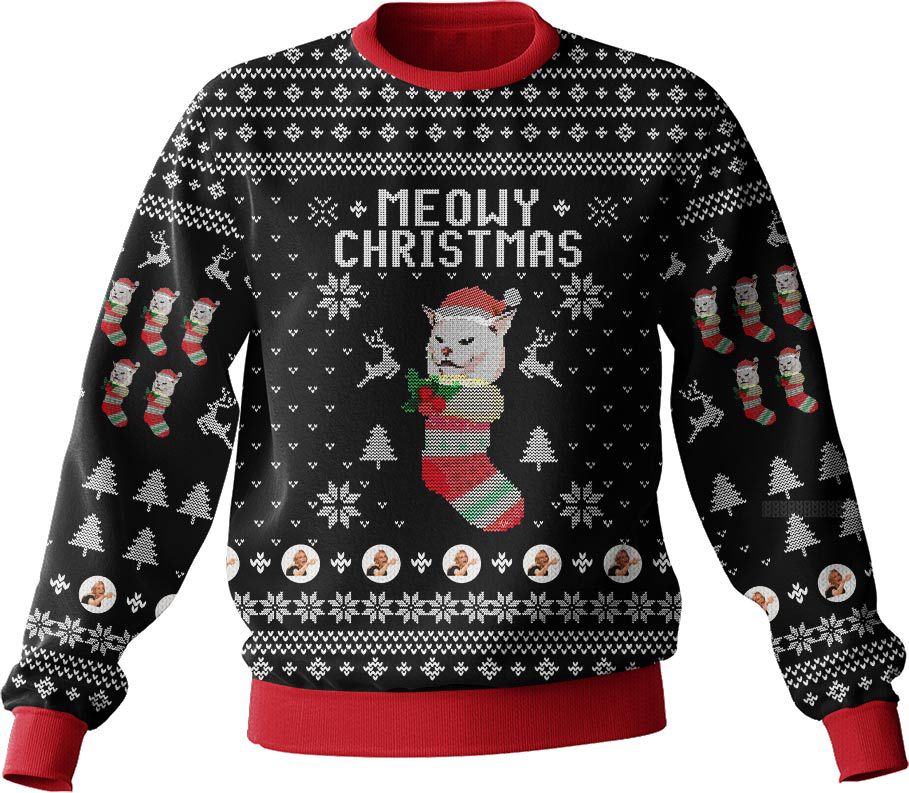 Hooktab Meowy Christmas Woman Yelling At A Cat Meme Ugly Christmas Sweater