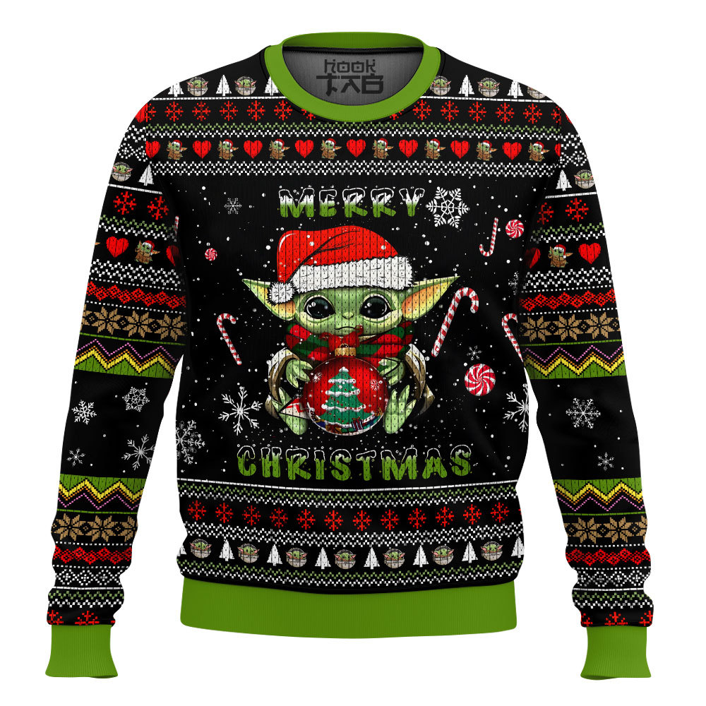 Hooktab Merry Christmas Baby Yoda Ugly Christmas Sweater