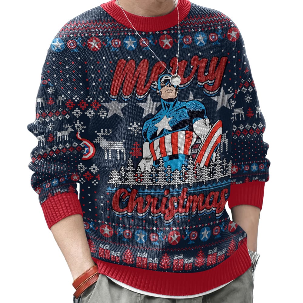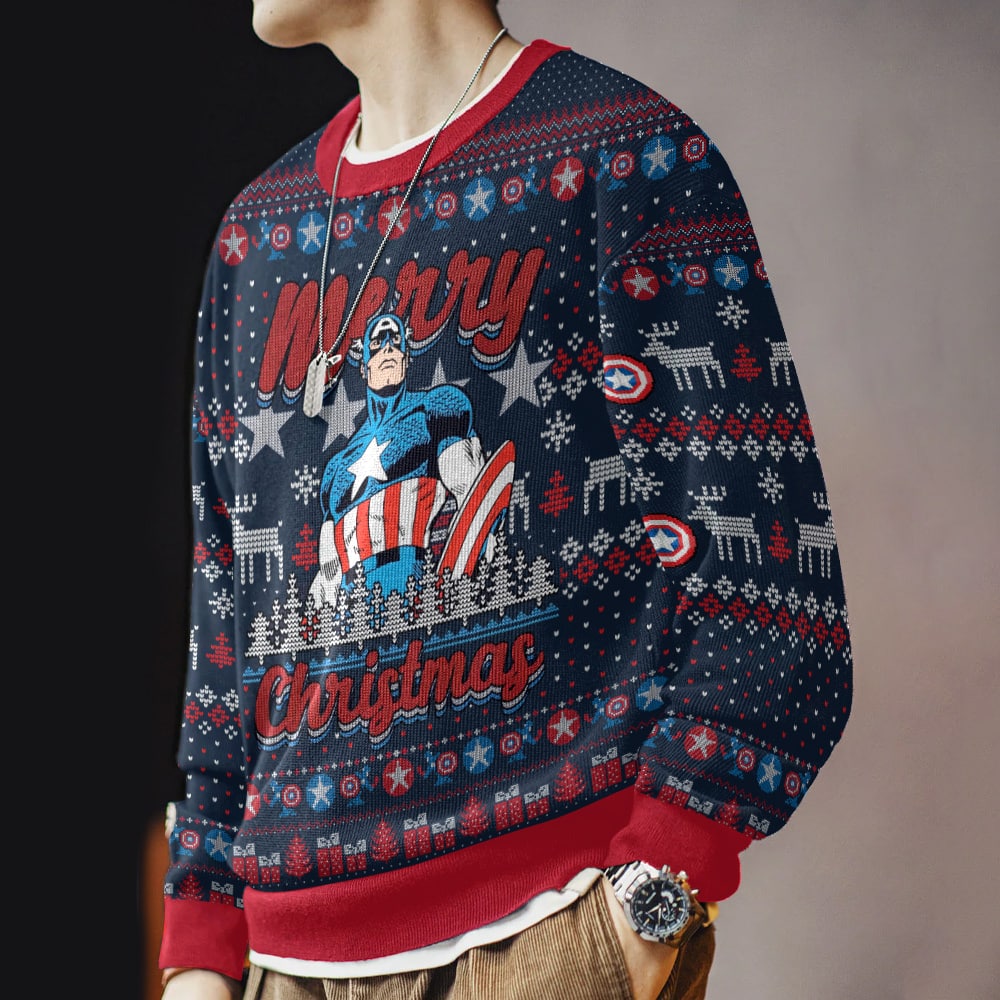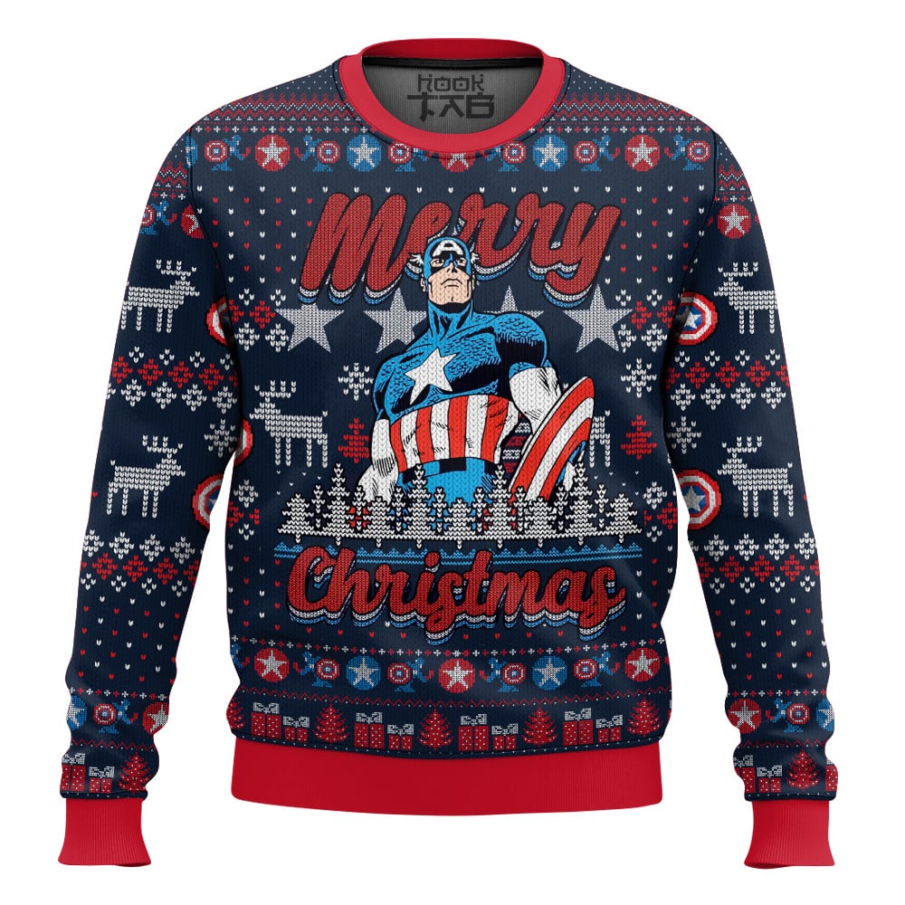Hooktab Merry Christmas Captain America Ugly Christmas Sweater