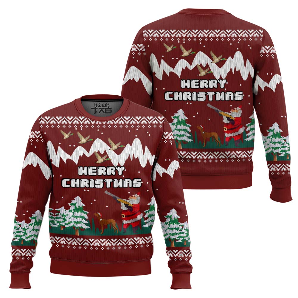 Hooktab Merry Christmas Duck Hunting Santa Ugly Christmas Sweater