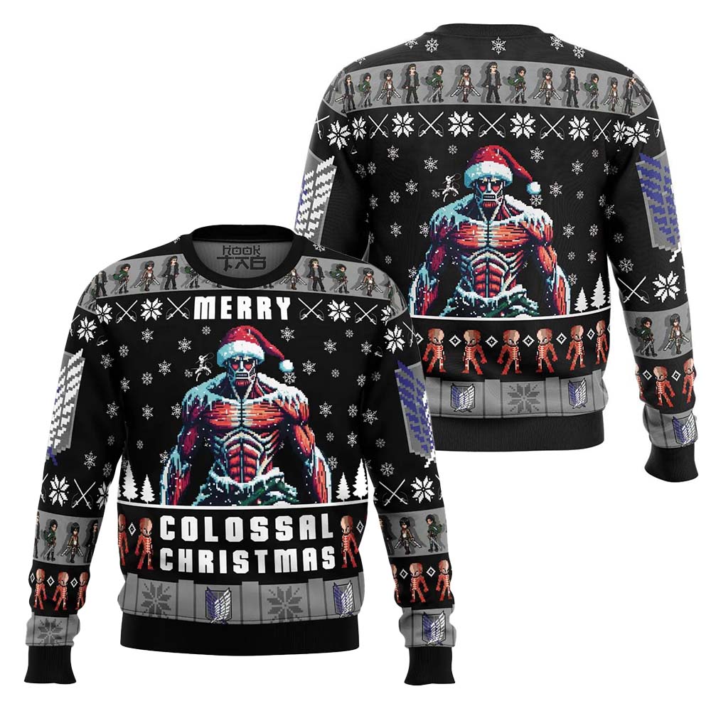 Hooktab Merry Colossal Christmas Attack On Titan Ugly Christmas Sweater