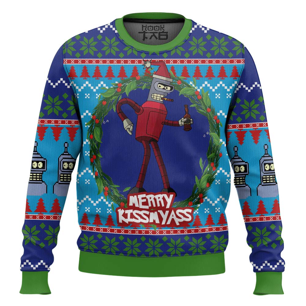 Hooktab Merry Kissmyass Futurama Ugly Christmas Sweater