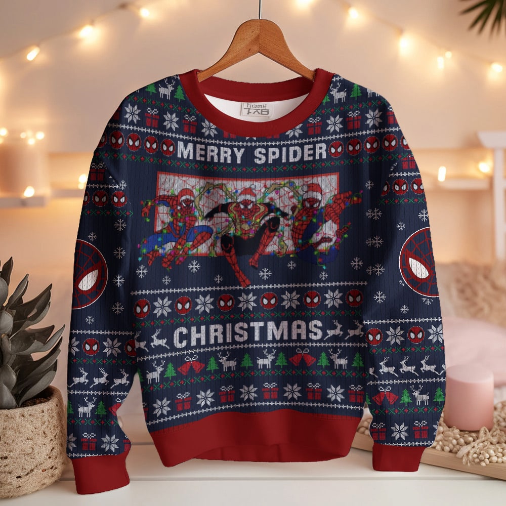 Hooktab Merry Spider Christmas Spider-man Ugly Christmas Sweater