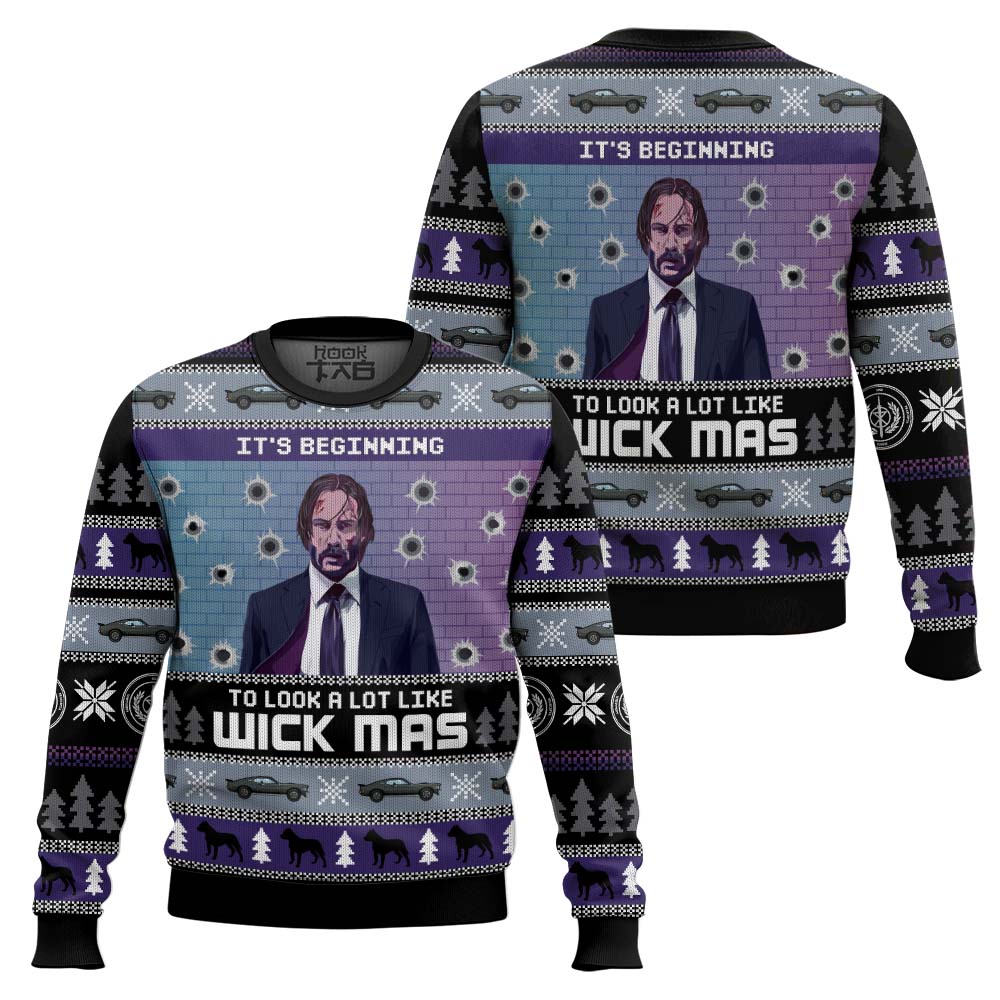 Hooktab Merry Wick-mas John Wick Ugly Christmas Sweater