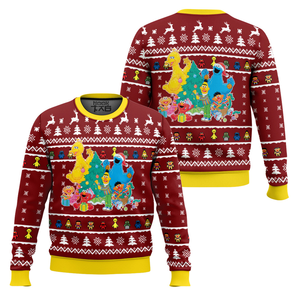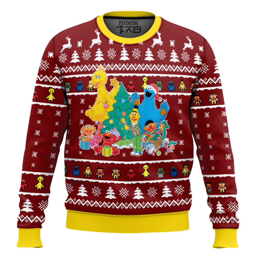 Hooktab Merry Xmas Sesame Street Ugly Christmas Sweater