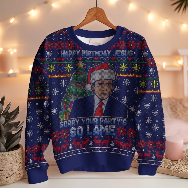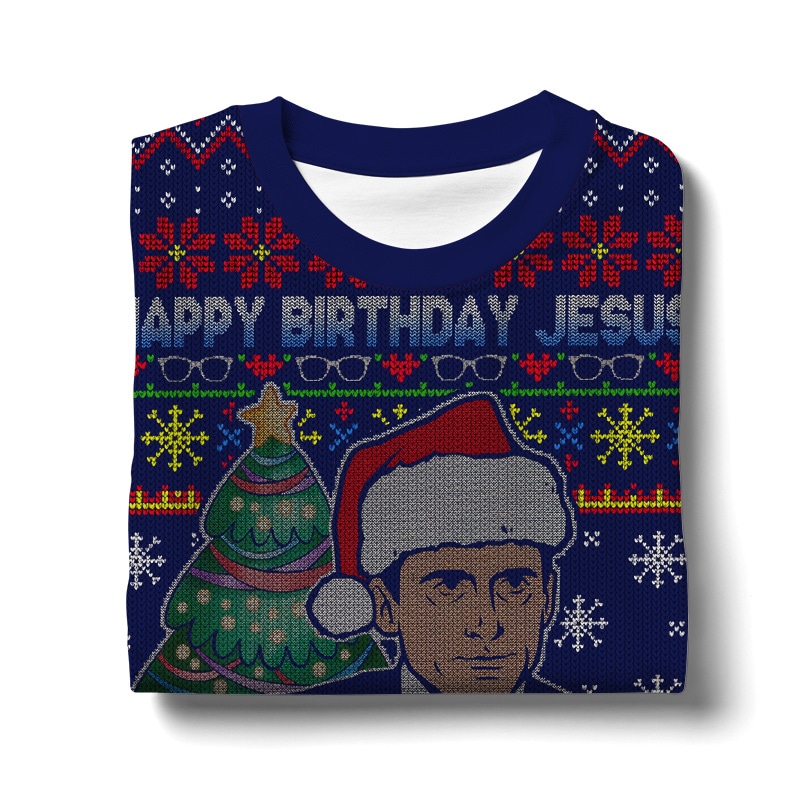 Hooktab Michael Scott Happy Birthday Jesus The Office Ugly Christmas Sweater