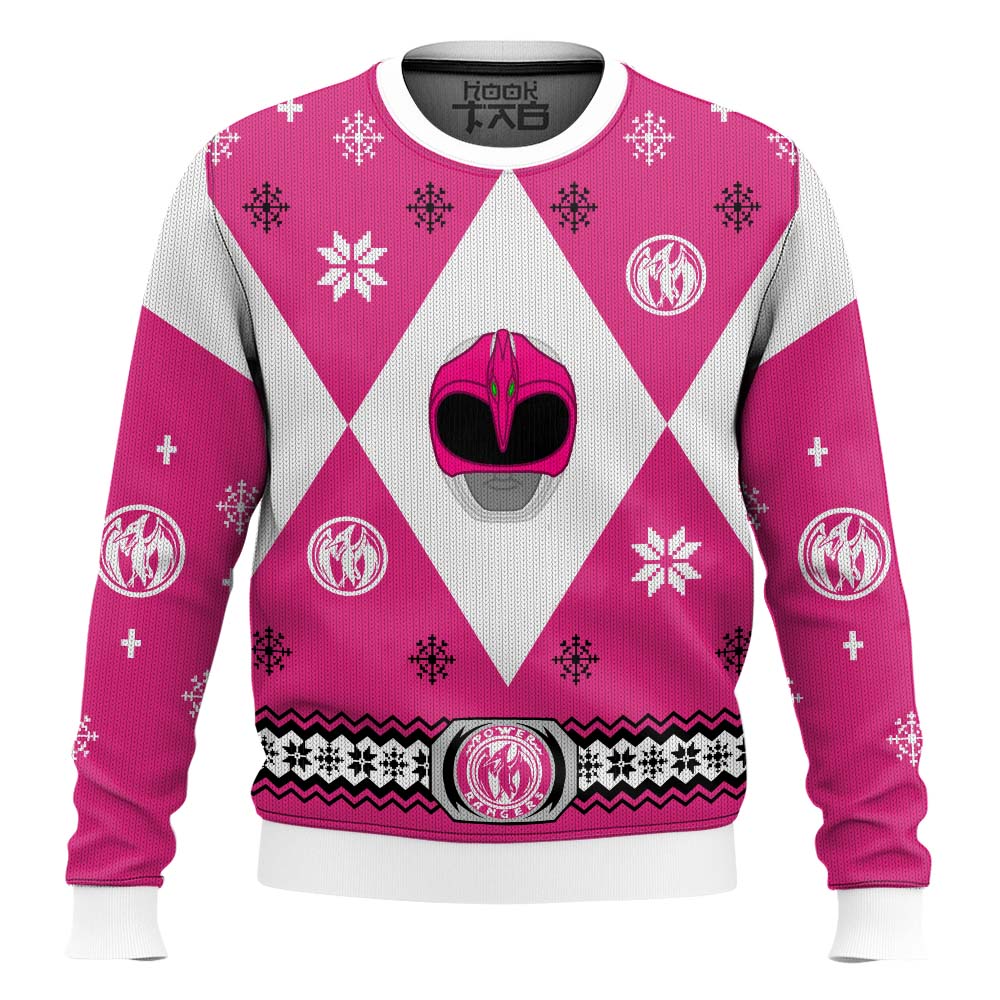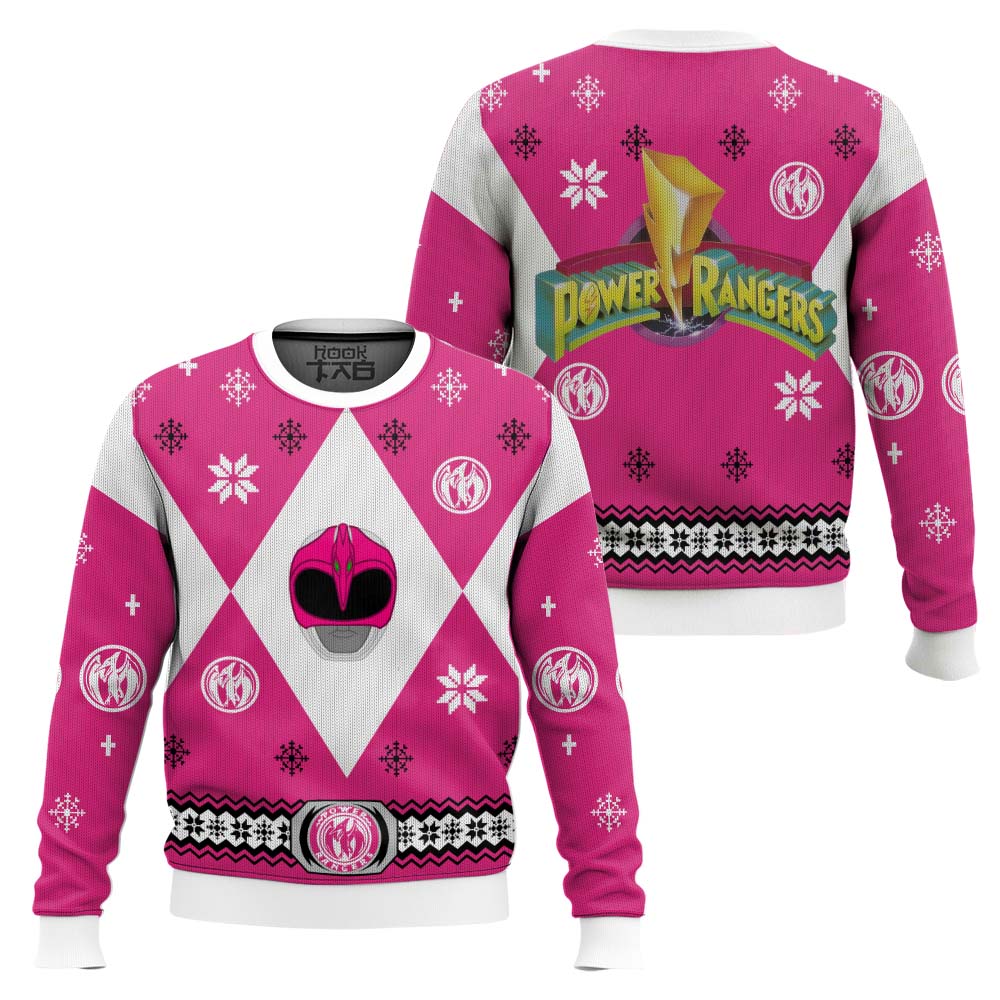 Hooktab Mighty Morphin Power Rangers Pink Ugly Christmas Sweater