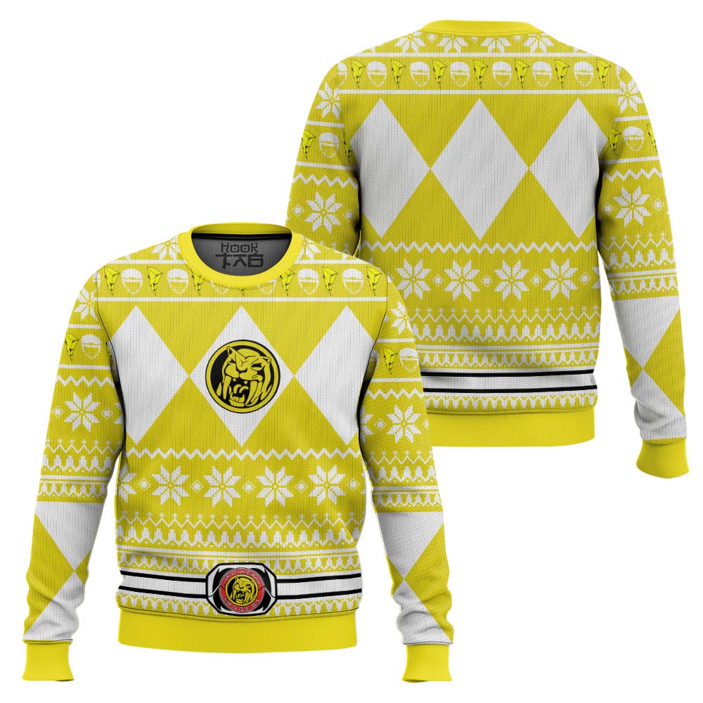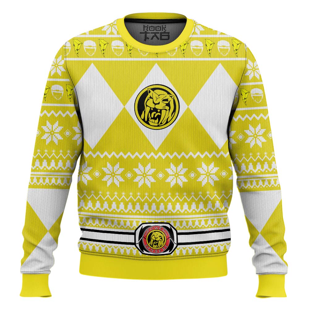 Hooktab Mighty Morphin Power Rangers Yellow Ugly Christmas Sweater