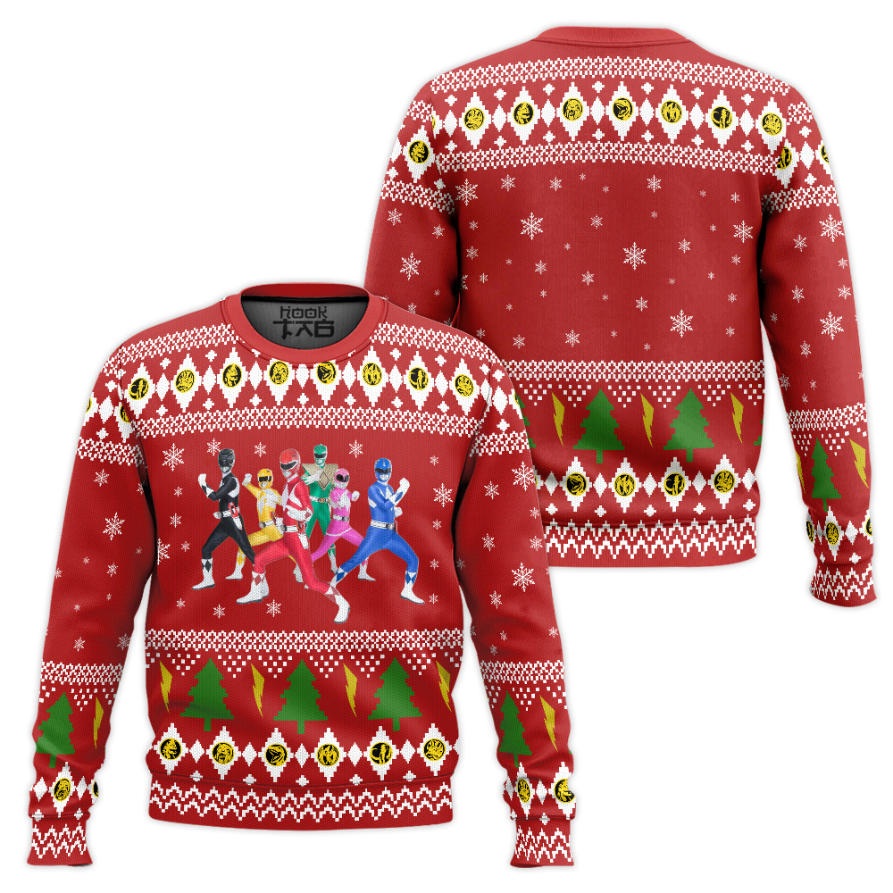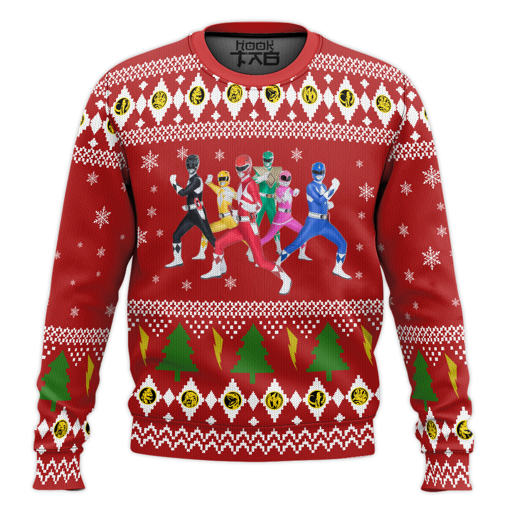 Hooktab Mighty Morphin Squad Power Rangers Ugly Christmas Sweater