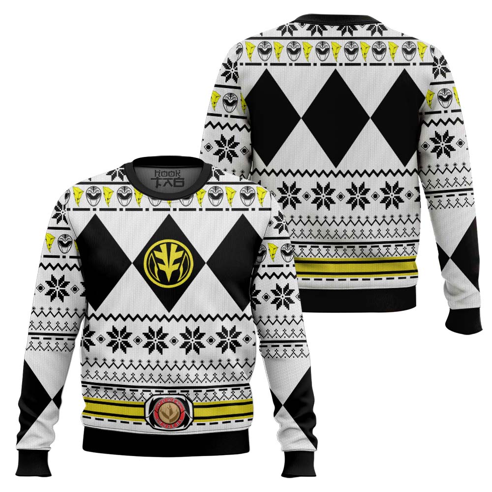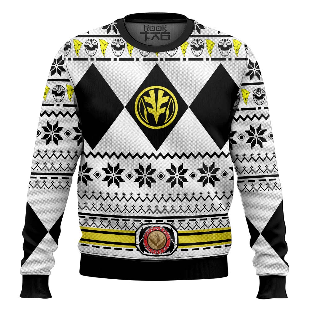 Hooktab Mighty Morphin White Power Rangers Ugly Christmas Sweater