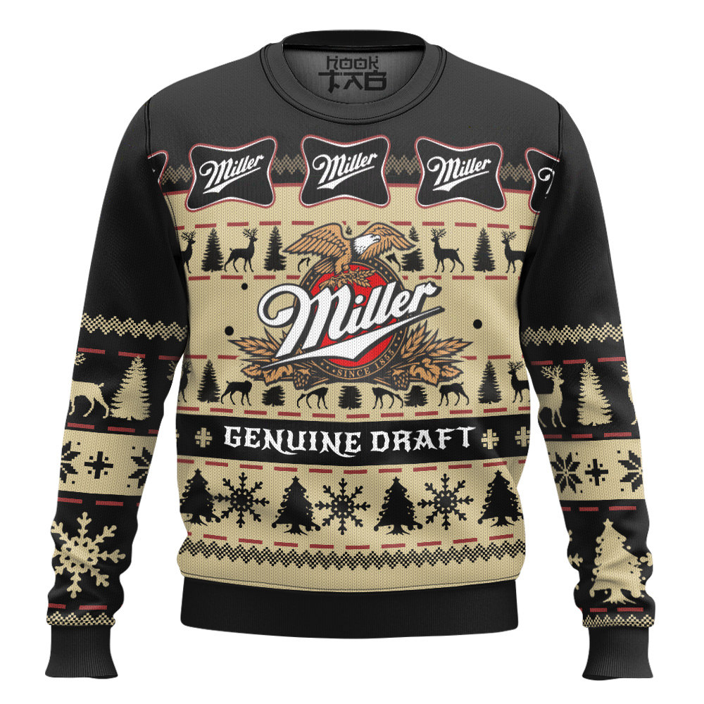 Hooktab Miller Genuine Draft Beer Ugly Christmas Sweater