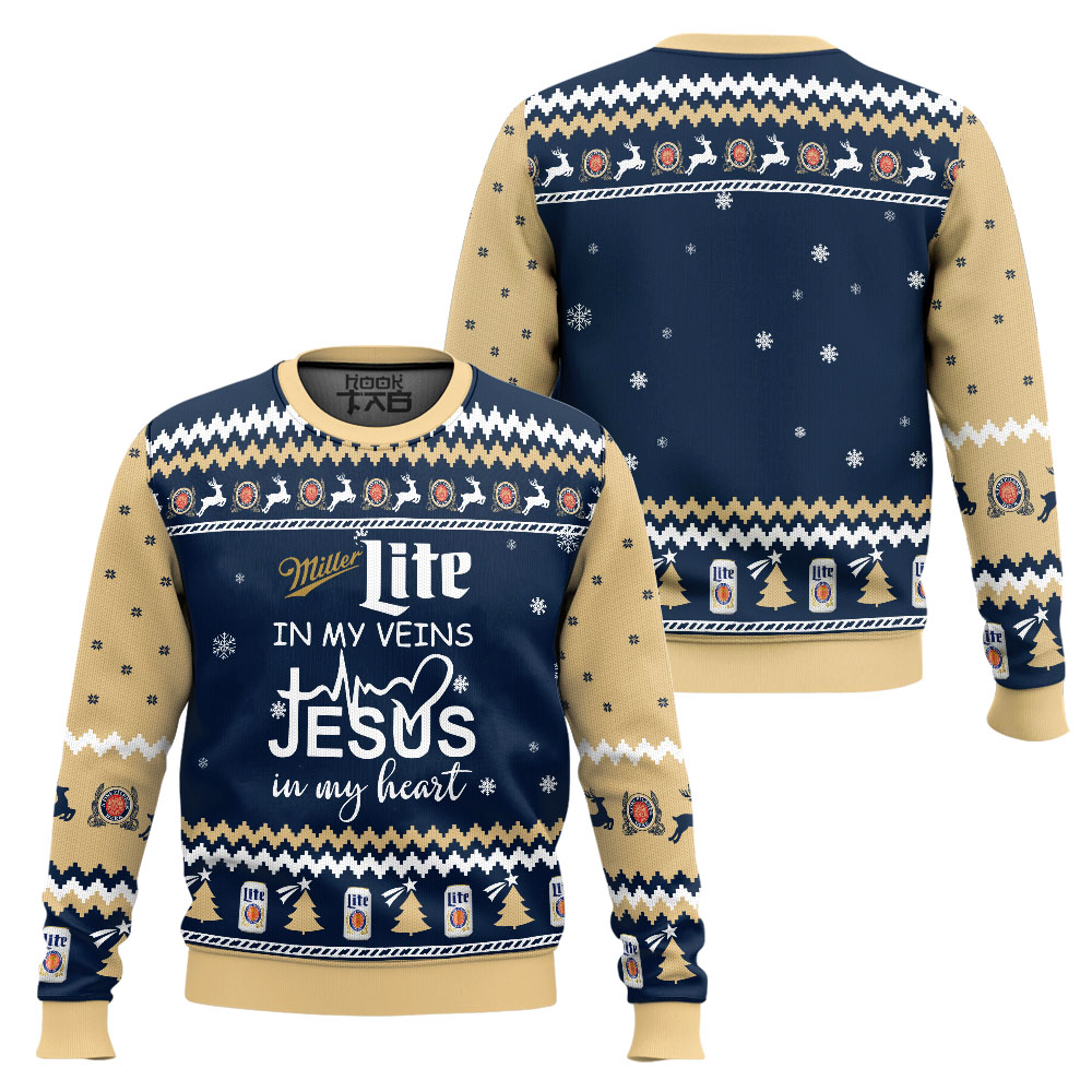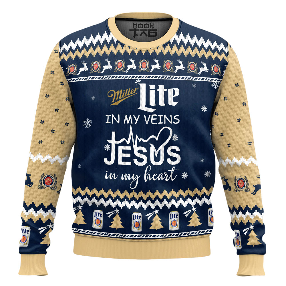 Hooktab Miller Lite In My Vein Ugly Christmas Sweater