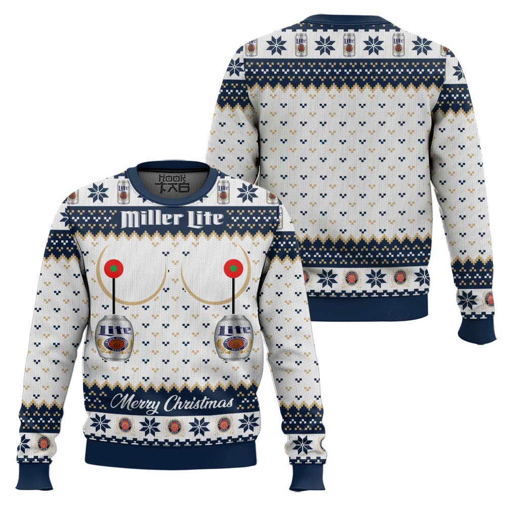 Hooktab Miller Lite Titties Funny Ugly Christmas Sweater