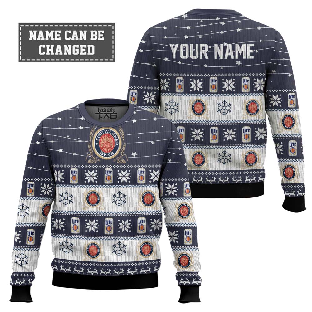 Personalized Miller Lite Twinkle Light Ugly Sweaters