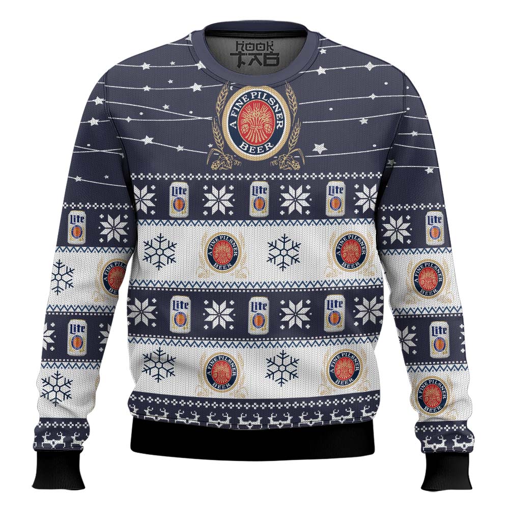 Hooktab Miller Lite Twinkle Lights – Custom Name Ugly Christmas Sweater
