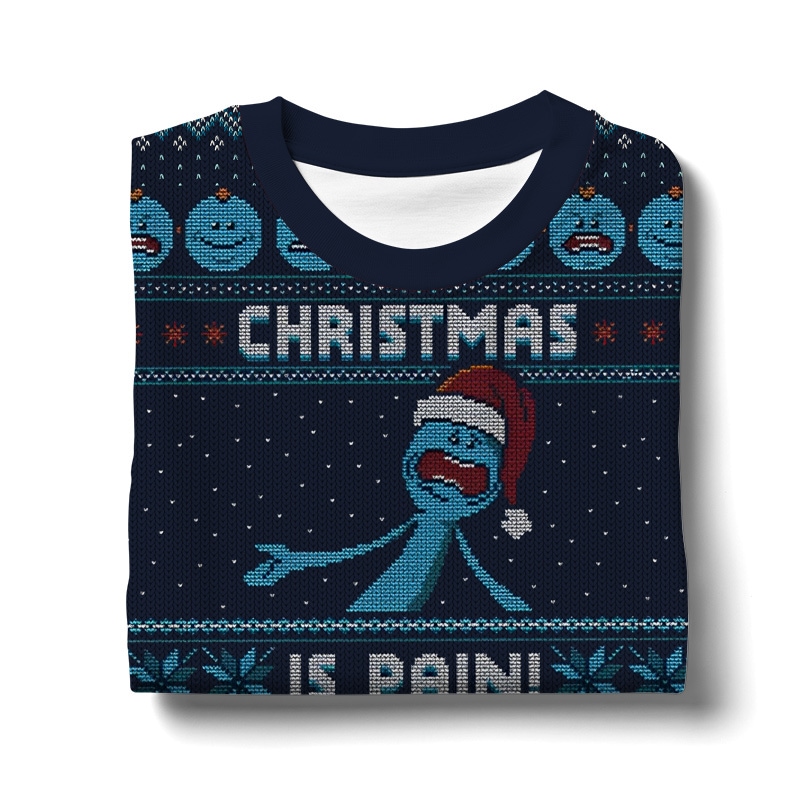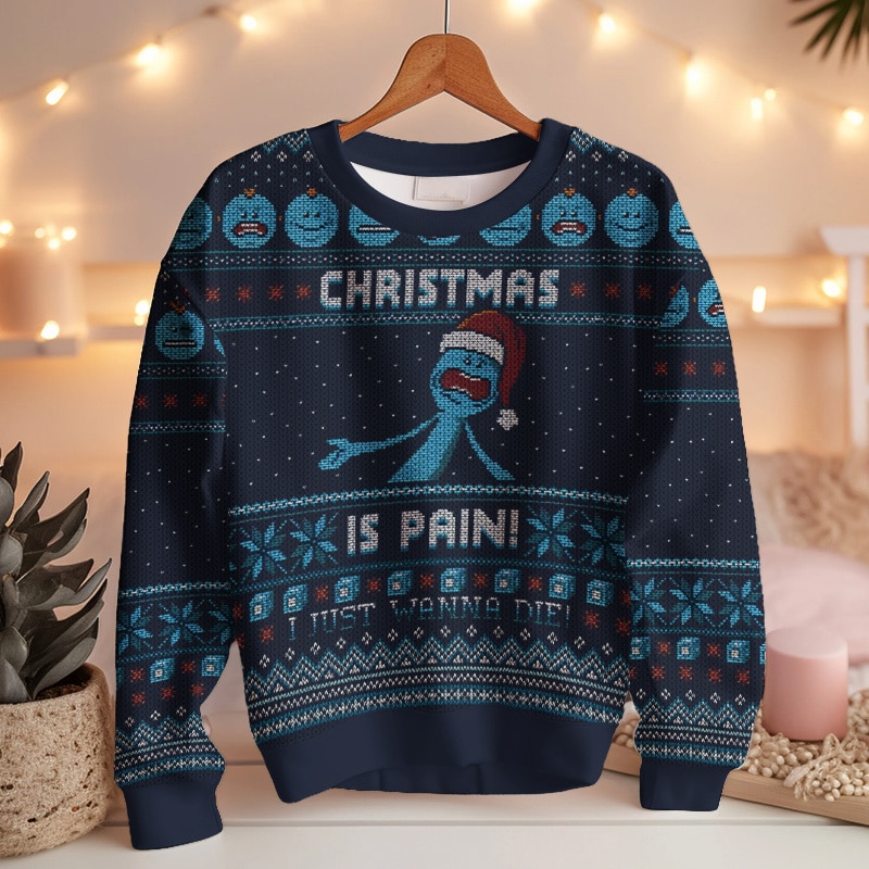 Hooktab Mr. Meeseeks “Christmas Is Pain” Rick And Morty Ugly Christmas Sweater