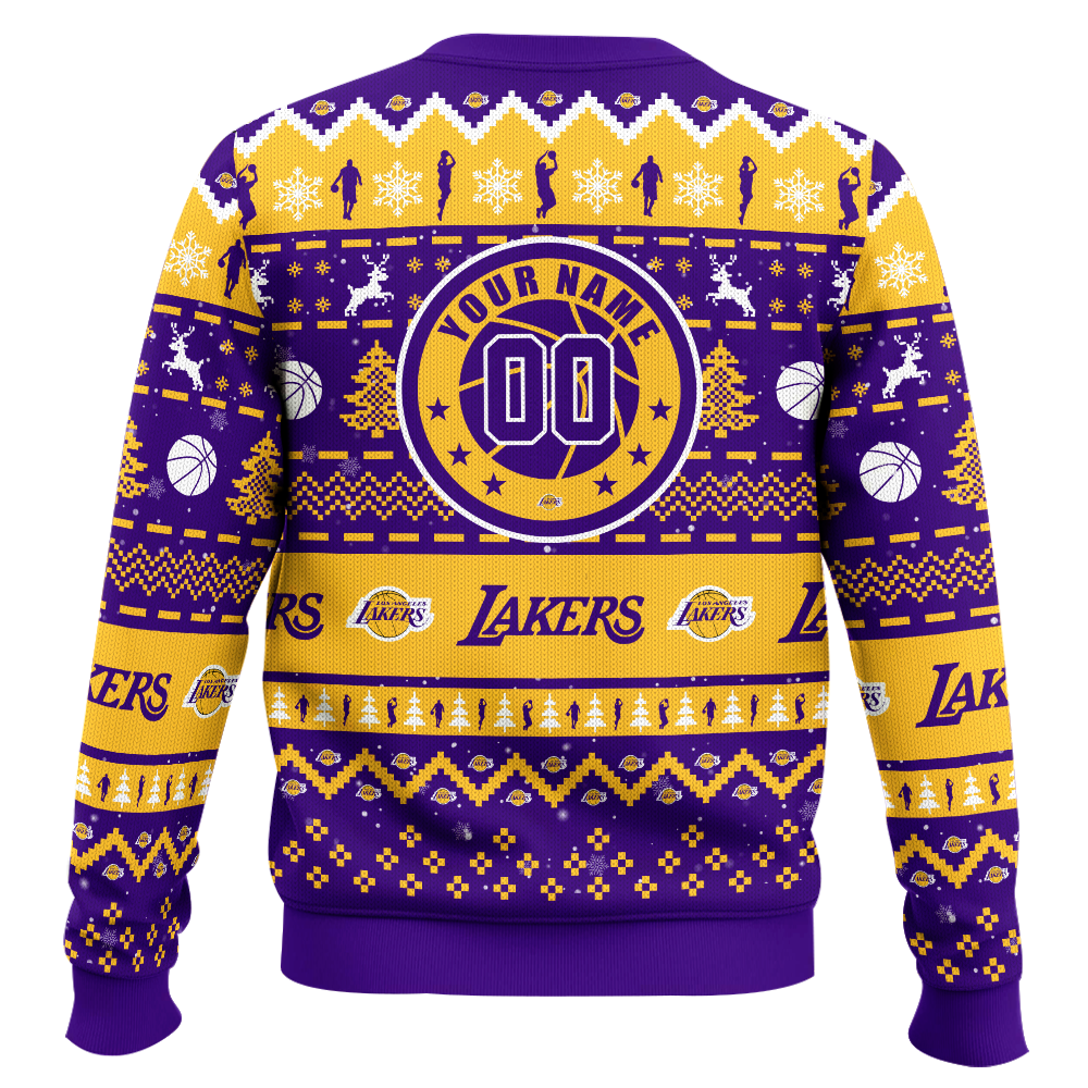 Hooktab NBA Los Angeles Lakers Custom Name And Number Ugly Christmas Sweater