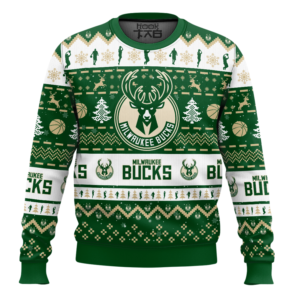 Hooktab NBA Milwaukee Bucks Christmas Ugly Sweater