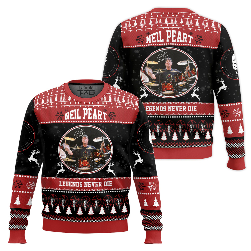 Hooktab Neil Peart Legend Never Die Ugly Christmas Sweater
