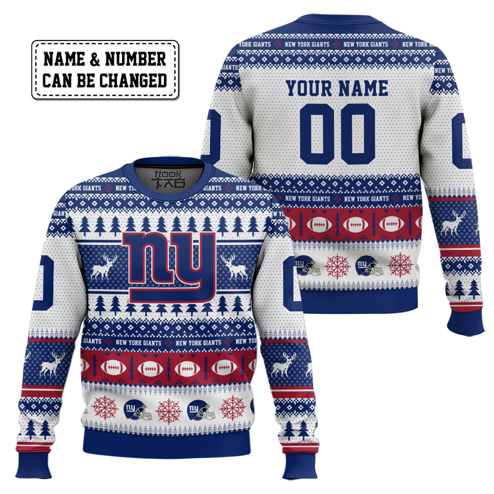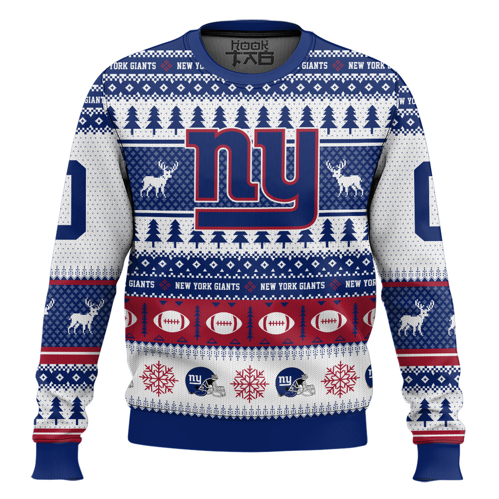 Hooktab New York Giants – Custom Name And Number Ugly Sweater